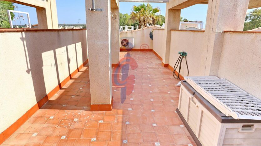– La terraza delantera está orientada al norte, la terraza trasera al sur y el solárium cuenta con unas bonitas vistas al mar y a la pinada.