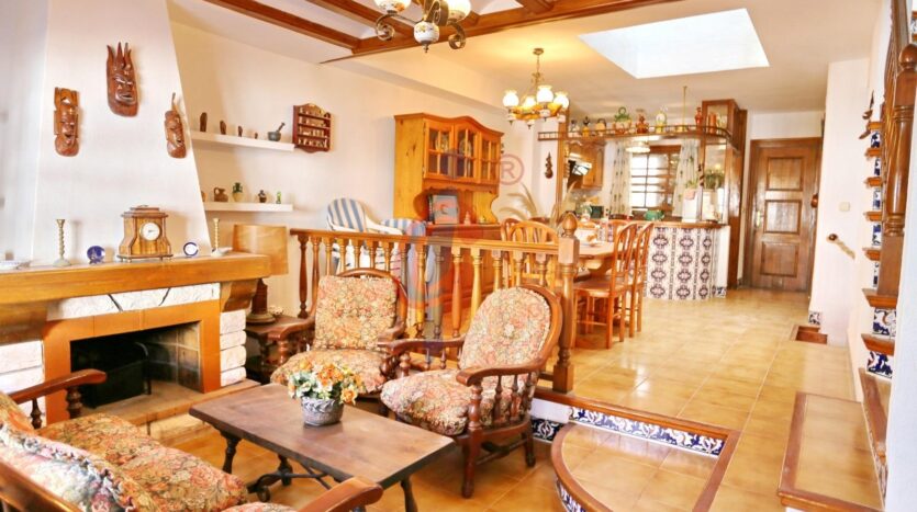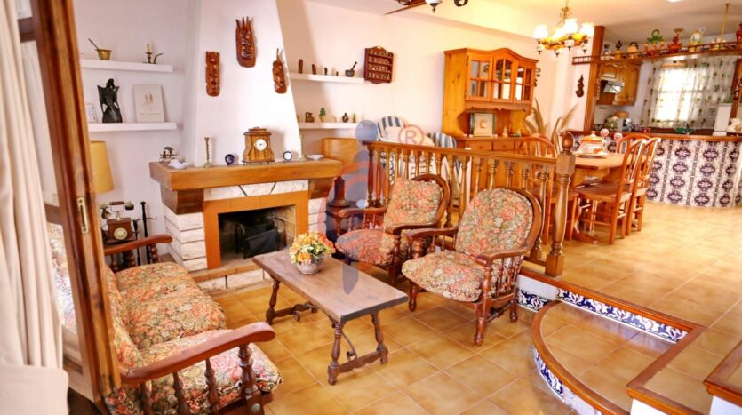 – La gran sala de estar y comedor con chimenea, tiene un interior muy castellano. Hay espacio para un gran sofá y mesa de comedor de 8 a 12 personas.