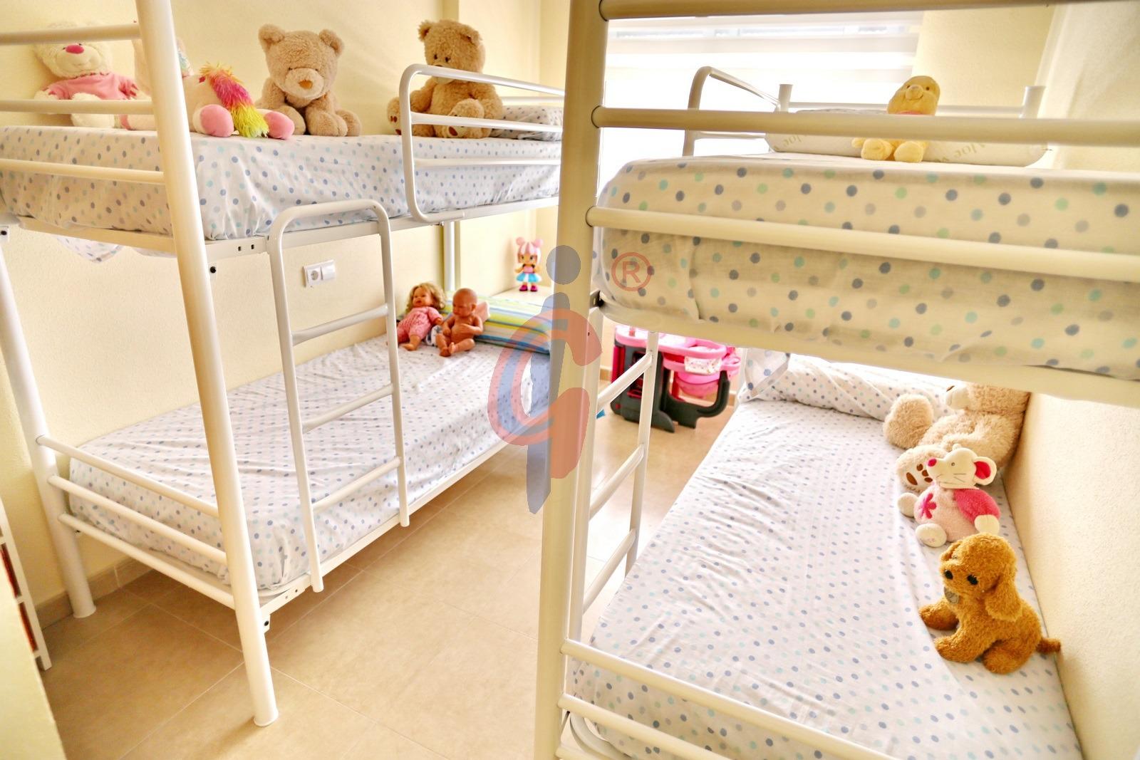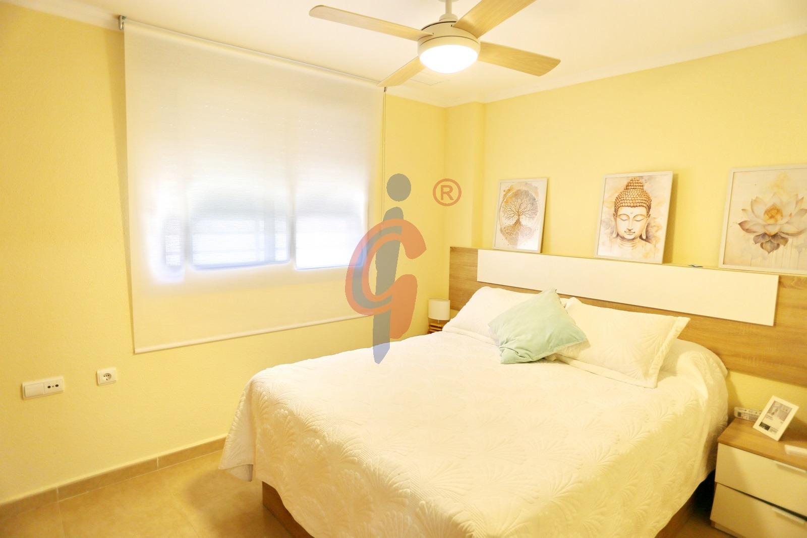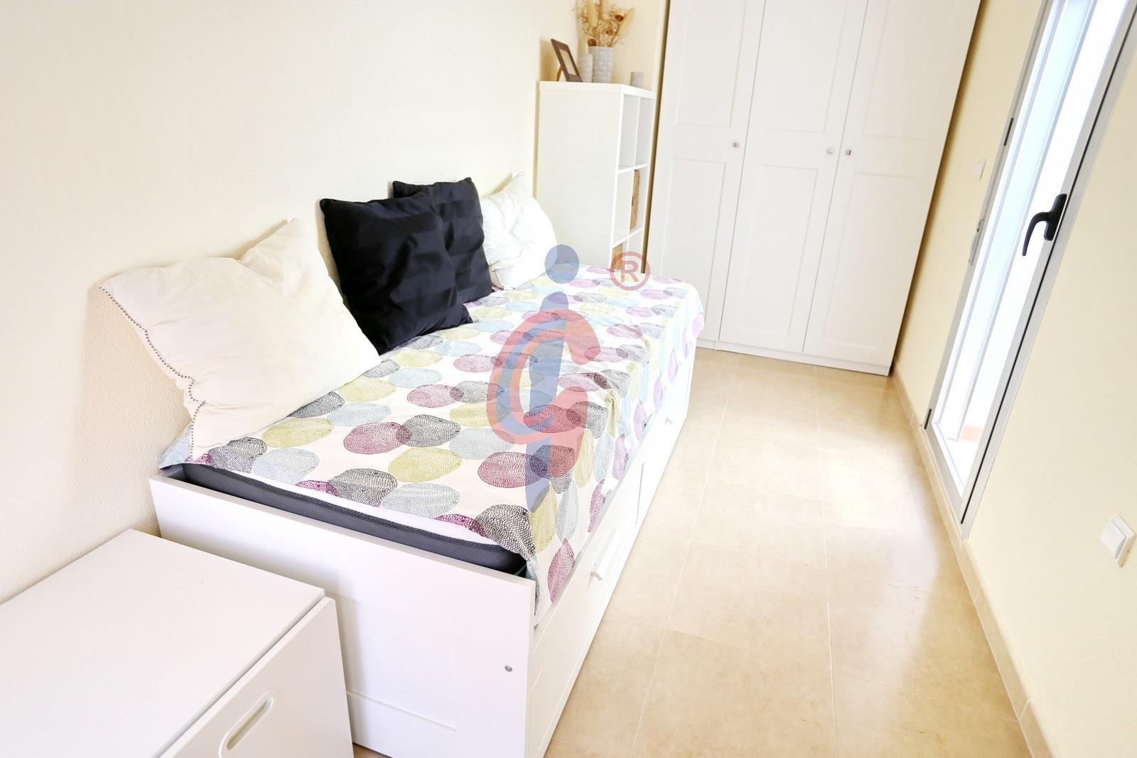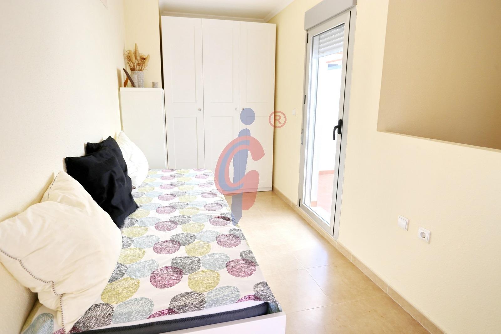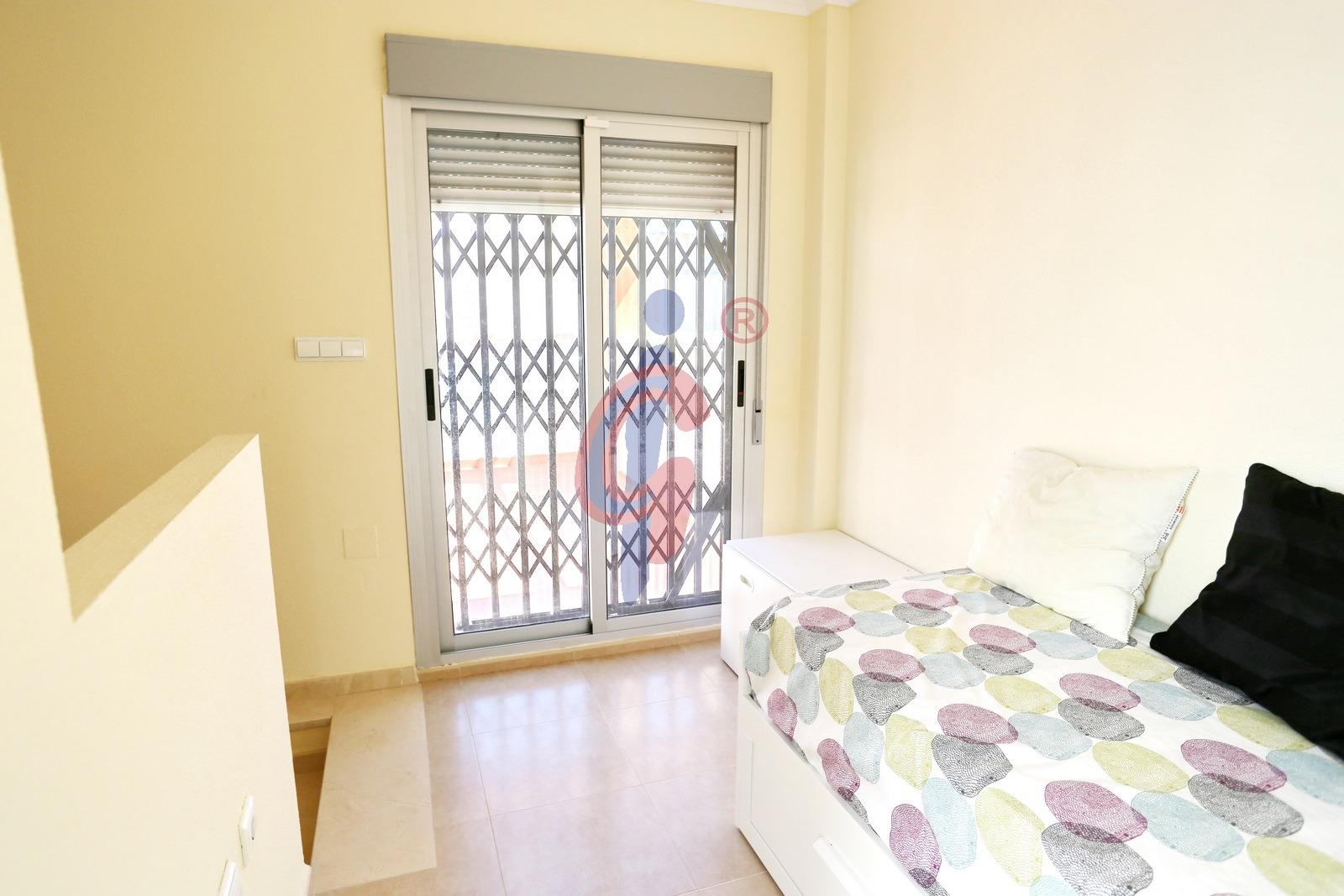 La propiedad cuenta con tres dormitorios, todos con armarios empotrados. El dormitorio principal dispone de un aseo privado, mientras que el dormitorio en la planta superior se abre a un amplio solárium privado, perfecto para relajarse y disfrutar del sol todo el año.