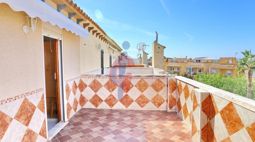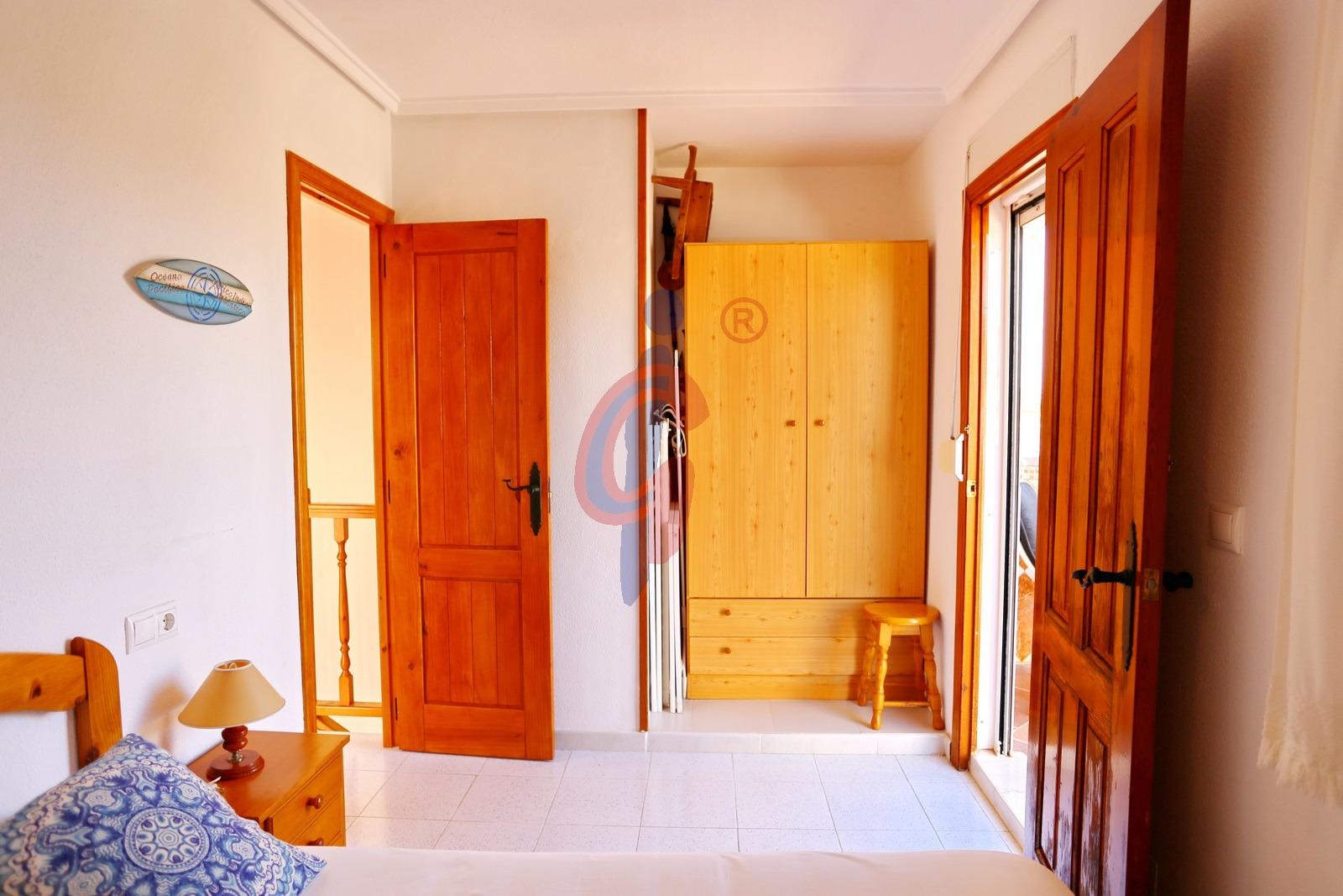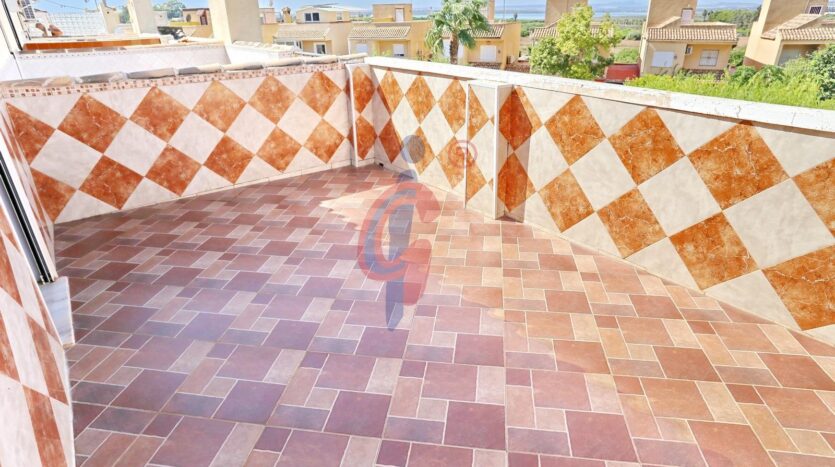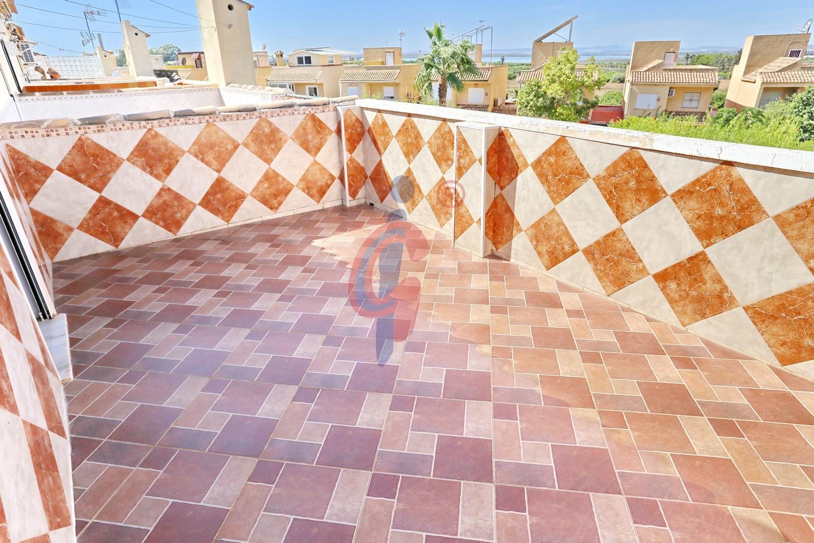 En la última planta un patio interior con orientación sur-este, un dormitorio adicional con cama doble con acceso a una amplia terraza tipo solárium con toldo y vistas abiertas a la urbanización y a las Lagunas de la Mata.