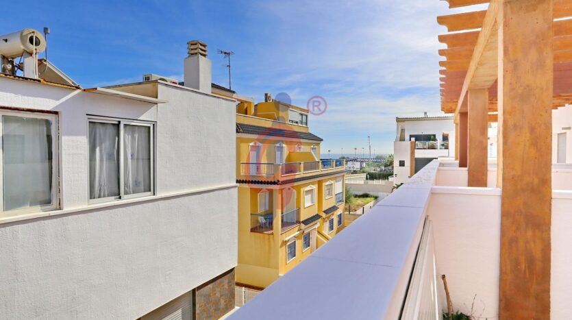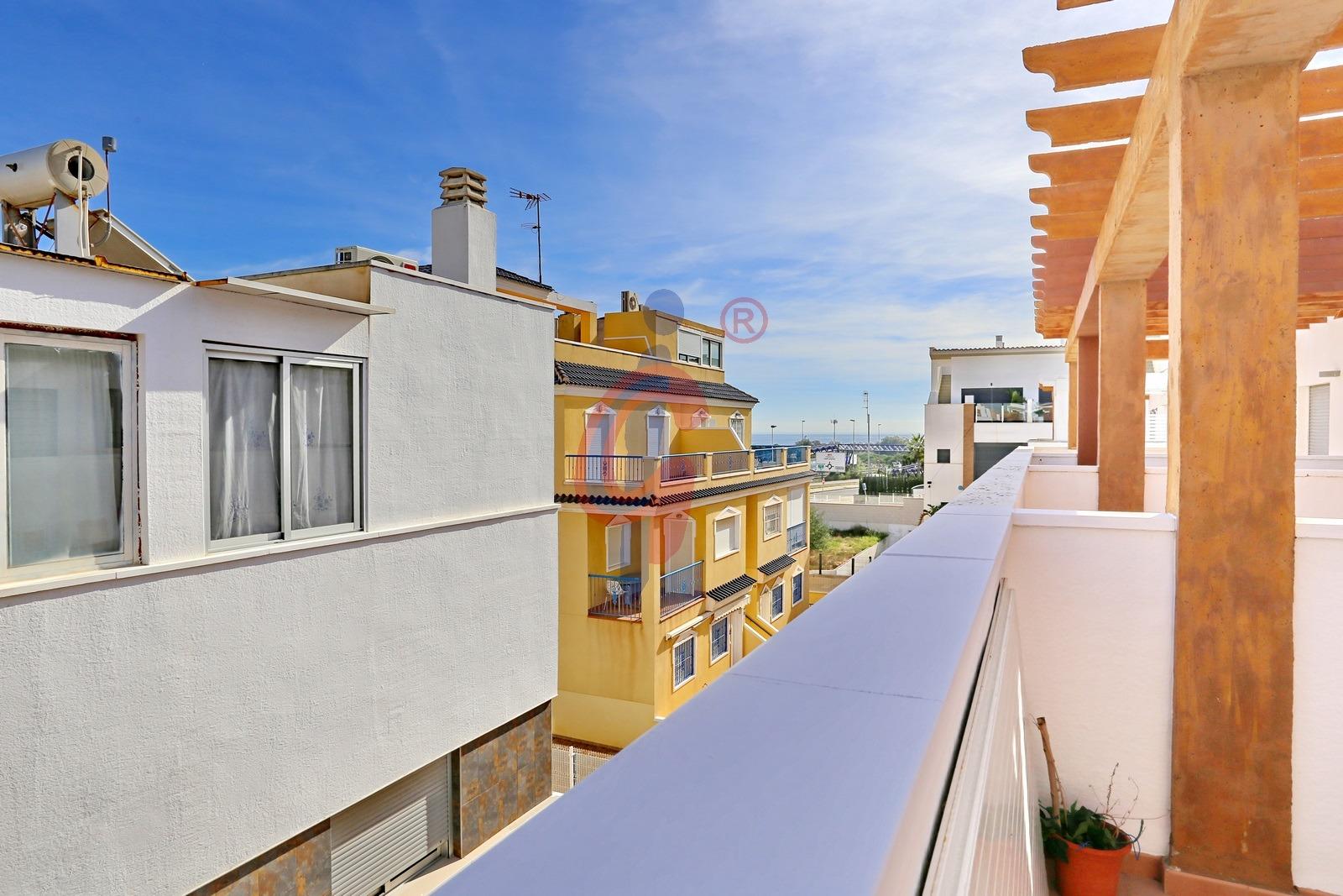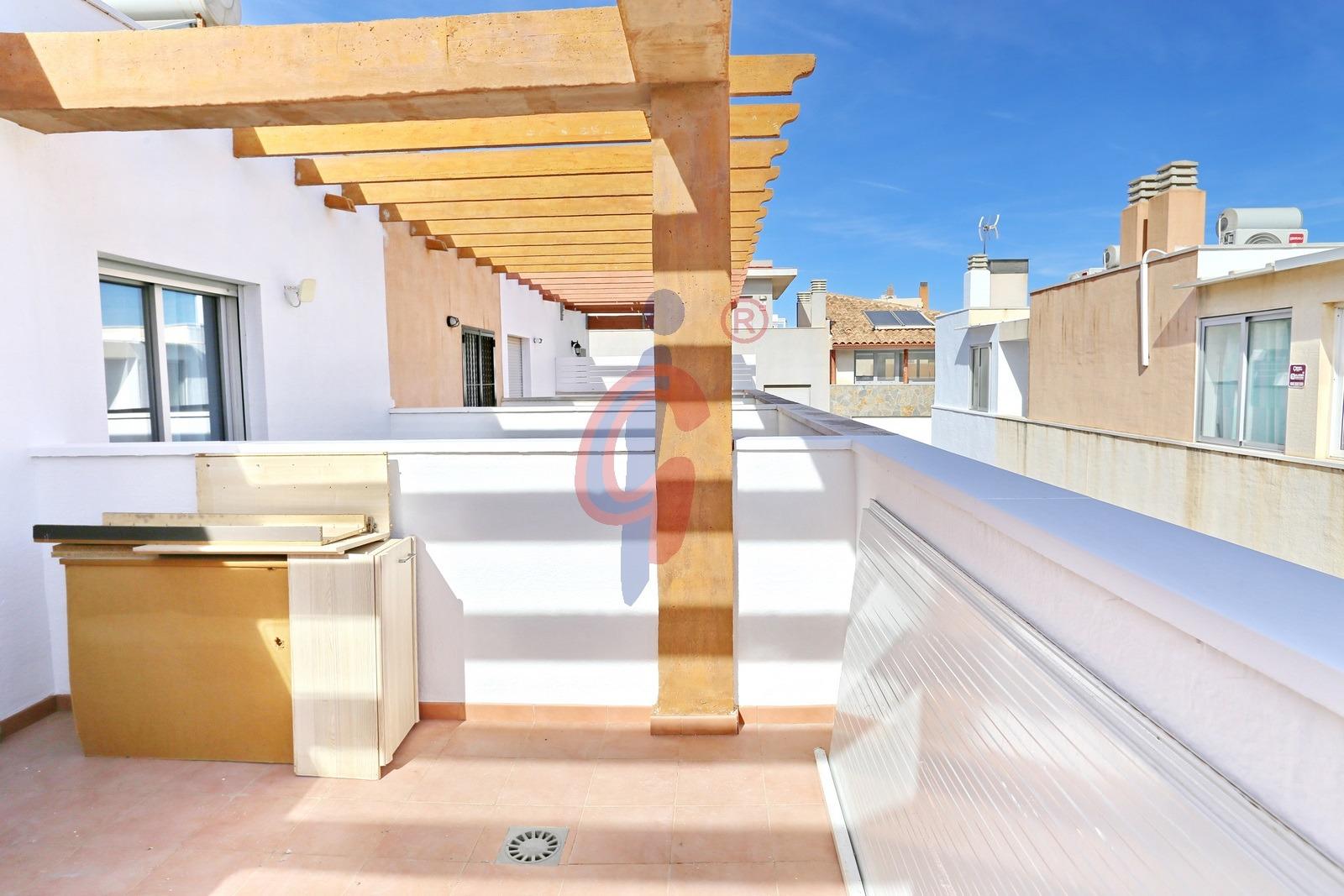 La planta superior alberga un tercer dormitorio con acceso a dos terrazas, una de ellas muy amplia, orientada al sureste, desde donde se pueden disfrutar vistas al mar a lo lejos.