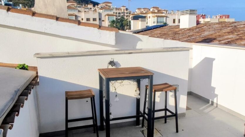 La primera planta dispone de dos cómodos dormitorios con armarios empotrados y un cuarto de baño completo con plato de ducha y acabados modernos. En la planta superior se encuentra el tercer dormitorio, que ofrece mayor privacidad, junto a un segundo baño completo y una agradable terraza, perfecta como zona de descanso o solárium.