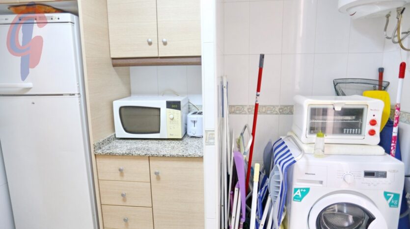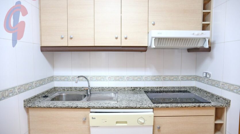 – Cocina independiente con encimera, con mucho espacio en los armarios y con electrodomésticos instalados. Con galería y una ventana para ventilación y luz natural.