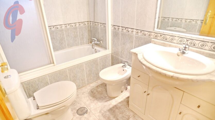 – Un cuarto de baño completo, con bañera y mampara, lavabo con mueble, inodoro y bidet.