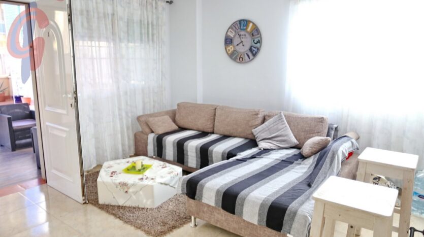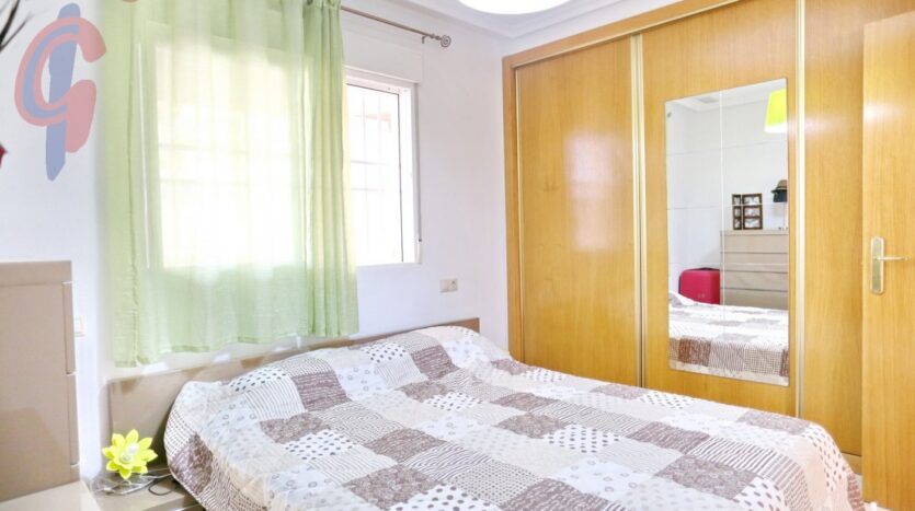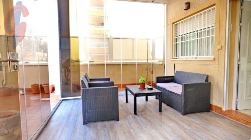 – Apartamento de 77 m2  sin contar las terrazas, está situado en la planta baja en esquina, con 3 orientaciones, tiene 2 dormitorios y 2 cuartos de baño y está en perfectas condiciones y amueblado con buen gusto.