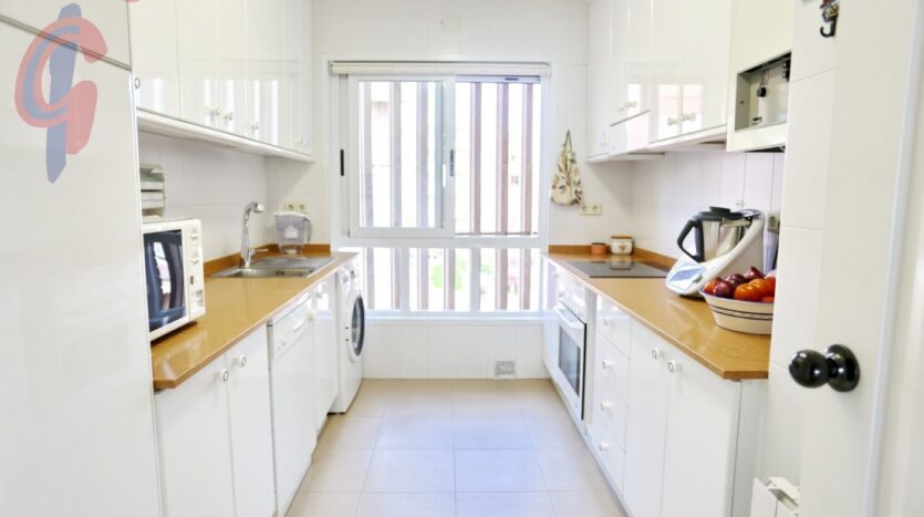 – Cocina independiente con encimera de silestone y mucho espacio en los armarios,  con electrodomésticos instalados y con acceso al lavadero o galería.