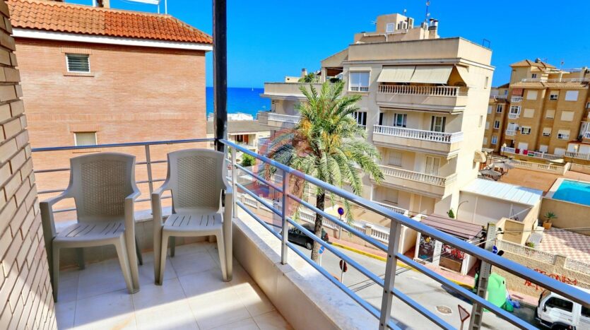 – Terraza de 8 m2 con vistas al mar y con espacio para una mesa y varias sillas.