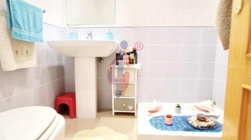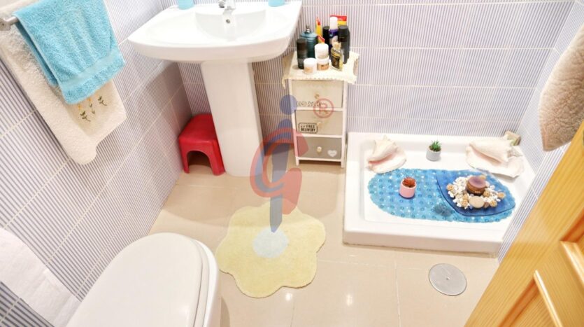 – 1 cuarto de baño completo con plato de ducha, lavabo, inodoro y armario.