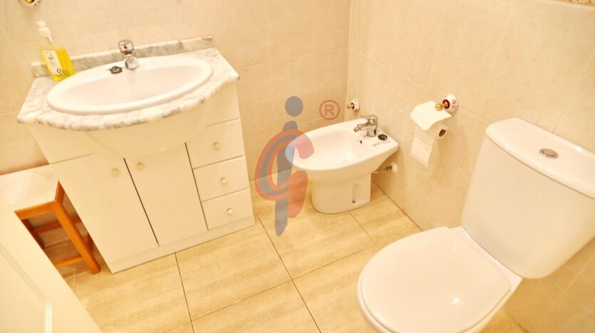 – Cuarto de baño completo con ducha y mampara, lavabo, bidet e inodoro.