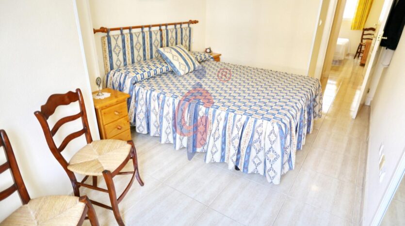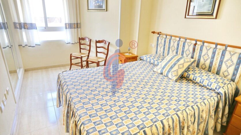 – Dormitorio principal con dos camas, armario empotrado y ventana exterior y espacio para mueble auxiliar.