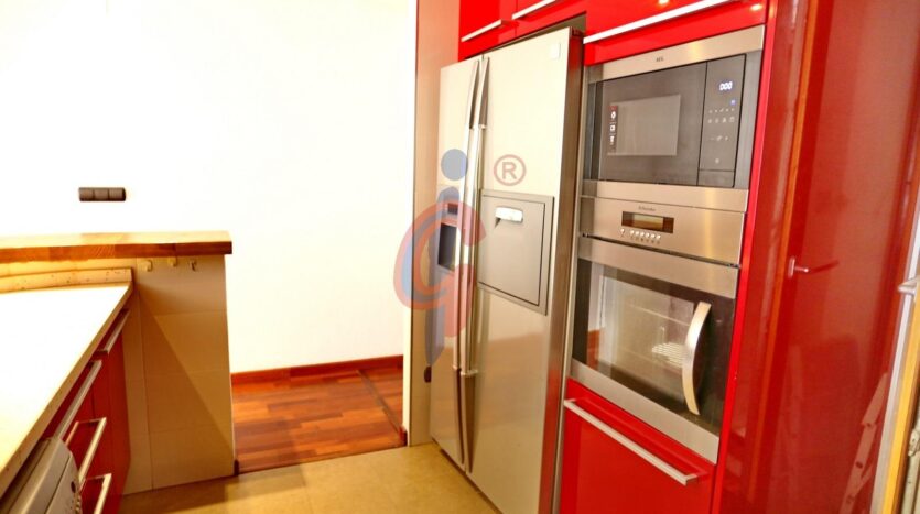 Cocina abierta al salón-comedor, con acceso a un patio de luz que aporta ventilación y luz natural.