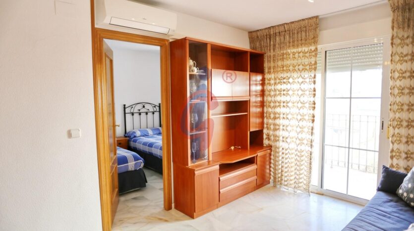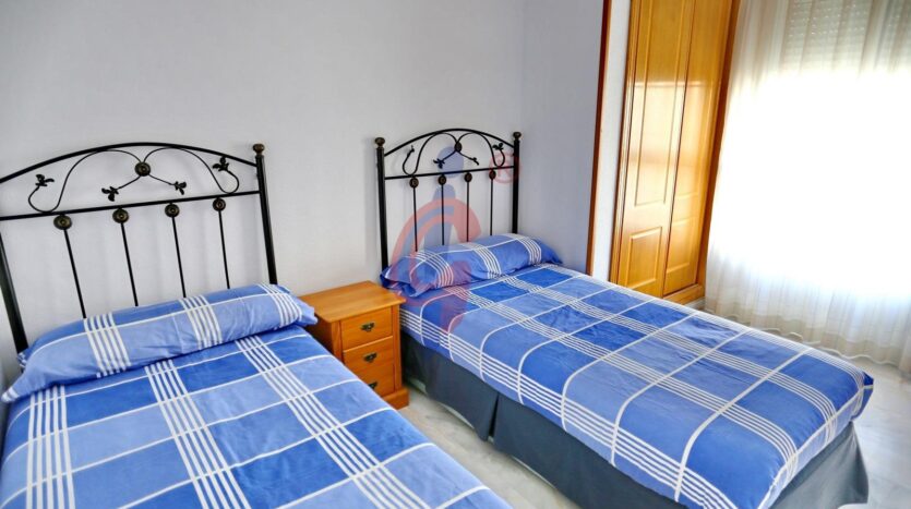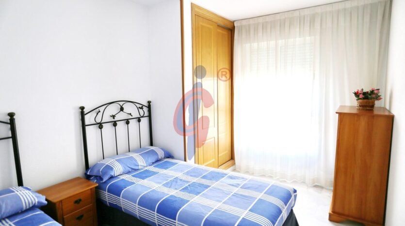 – El dormitorio principal es muy amplio, tiene dos camas individuales, un armario empotrado y muebles auxiliares, tiene ventana exterior al oeste.