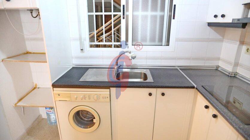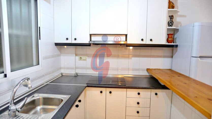 – Cocina al salón comedor, armarios superiores e inferiores, incluye los electrodomésticos instalados y ventana interior a las zonas comunes.