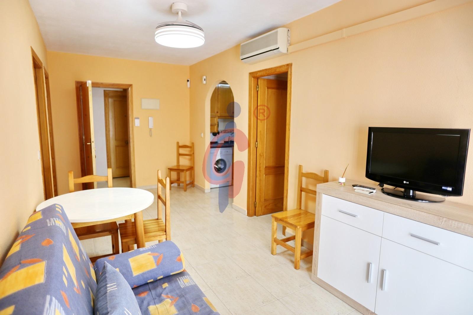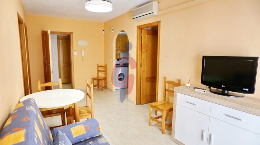 – Sala de estar con sofá, mueble de TV y mesa de comedor con 4 sillas.