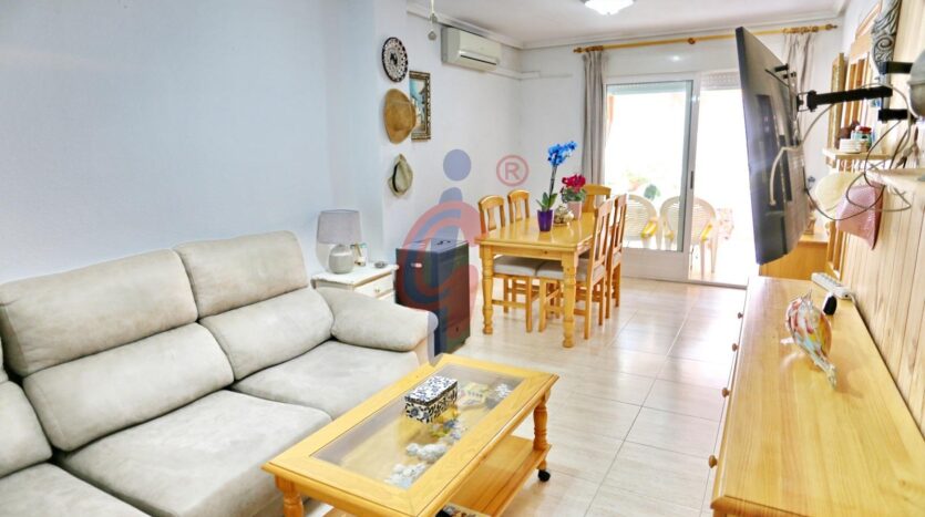 La vivienda dispone de tres acogedores dormitorios, uno de ellos con baño en suite, brindando privacidad y confort. El luminoso salón comedor ofrece acceso a una amplia terraza, desde la que podrás disfrutar de vistas laterales al mar, creando un ambiente perfecto para relajarte o recibir a tus seres queridos.