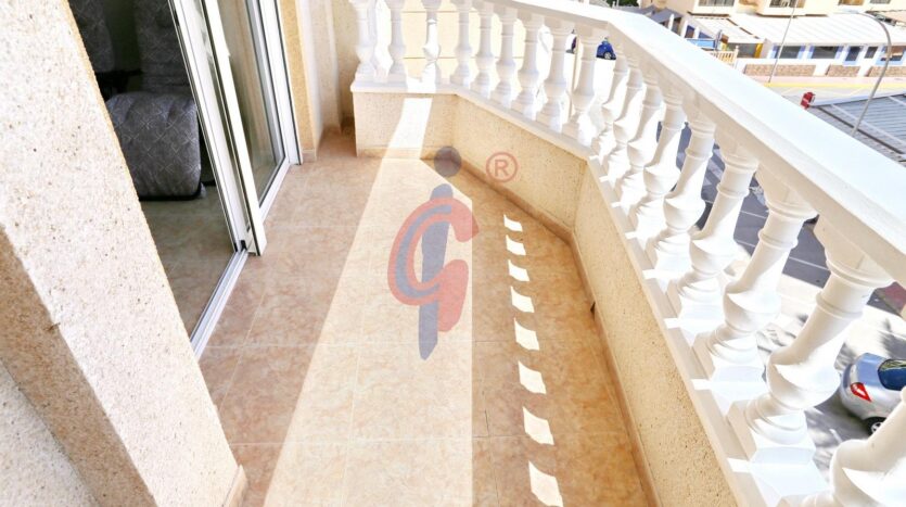 – Terraza con sol de mañana  y  vistas bastante despejadas.