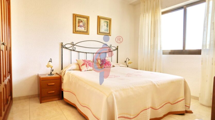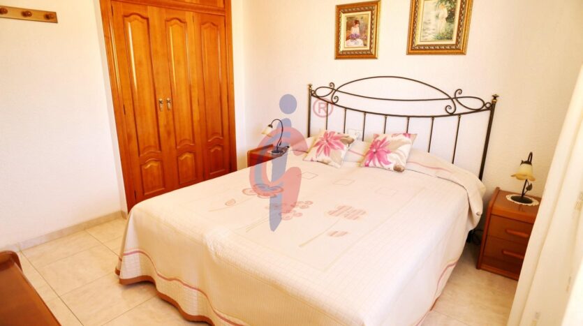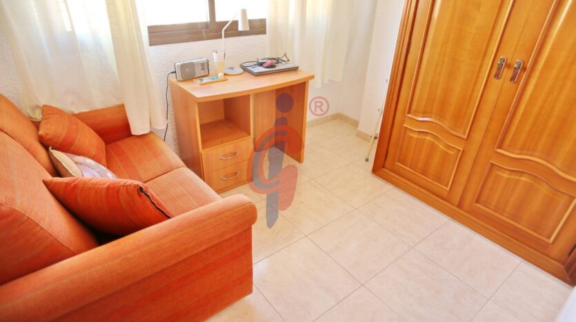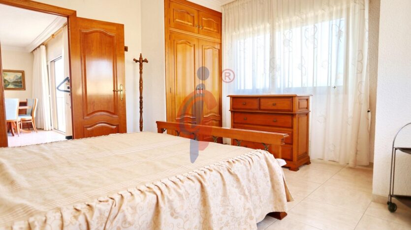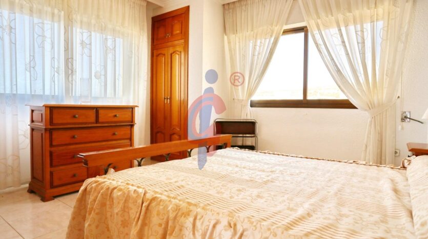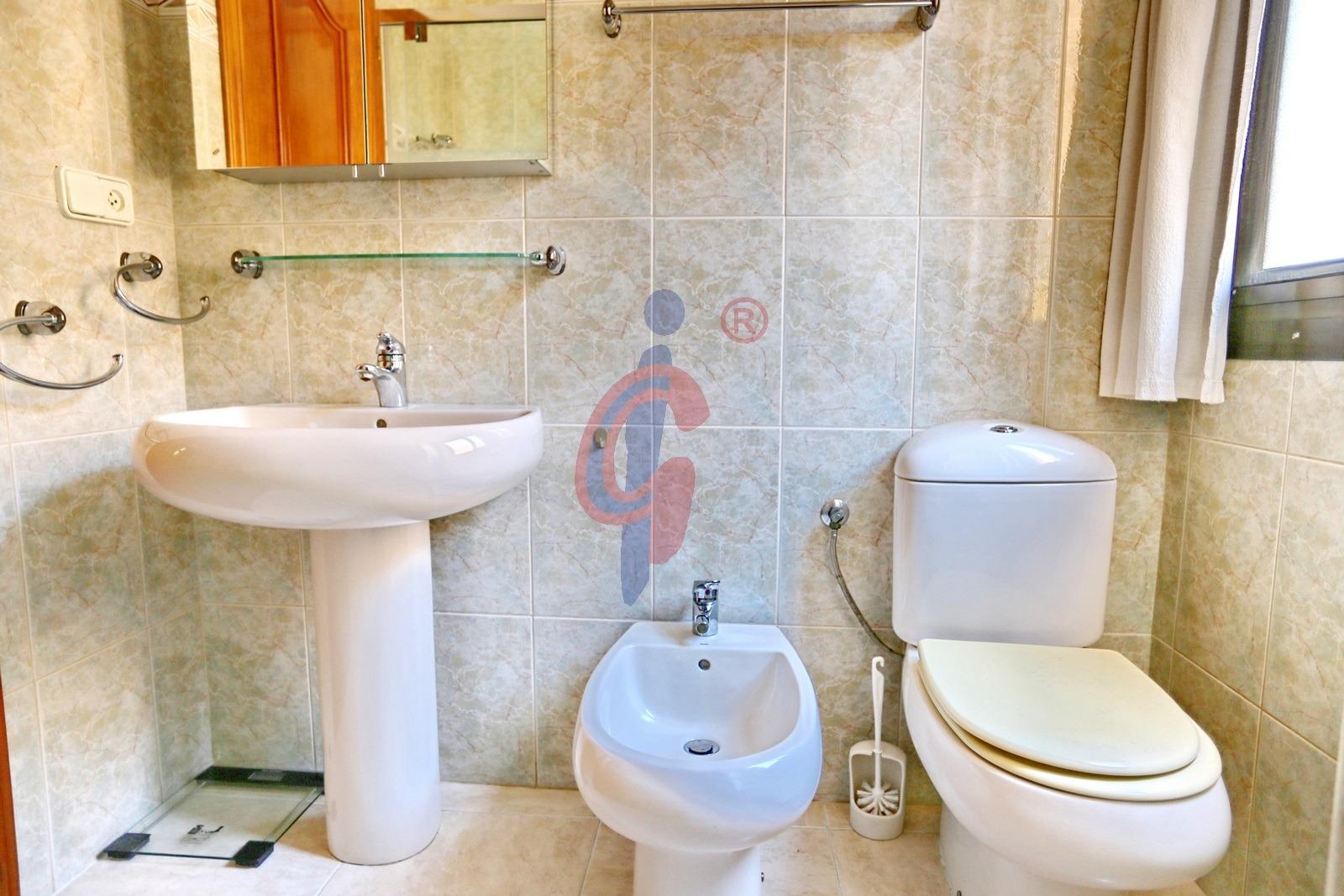 La vivienda cuenta con tres dormitorios con armarios empotrados: uno orientado al sur, con vistas laterales al mar, y los otros dos al oeste. El baño completo dispone de ventana exterior, plato de ducha, lavabo e inodoro.
