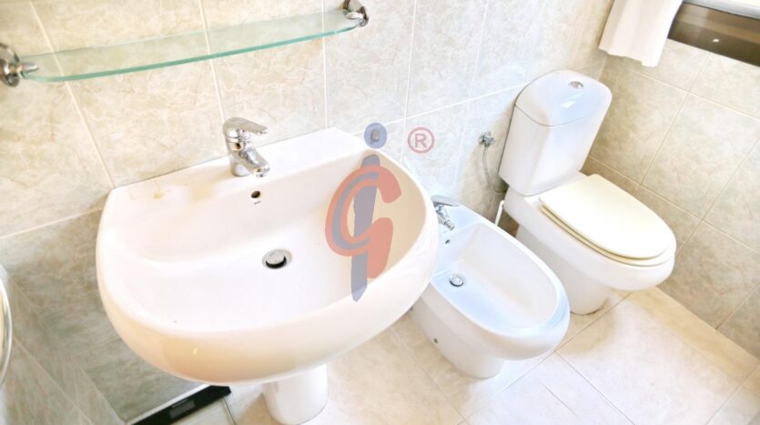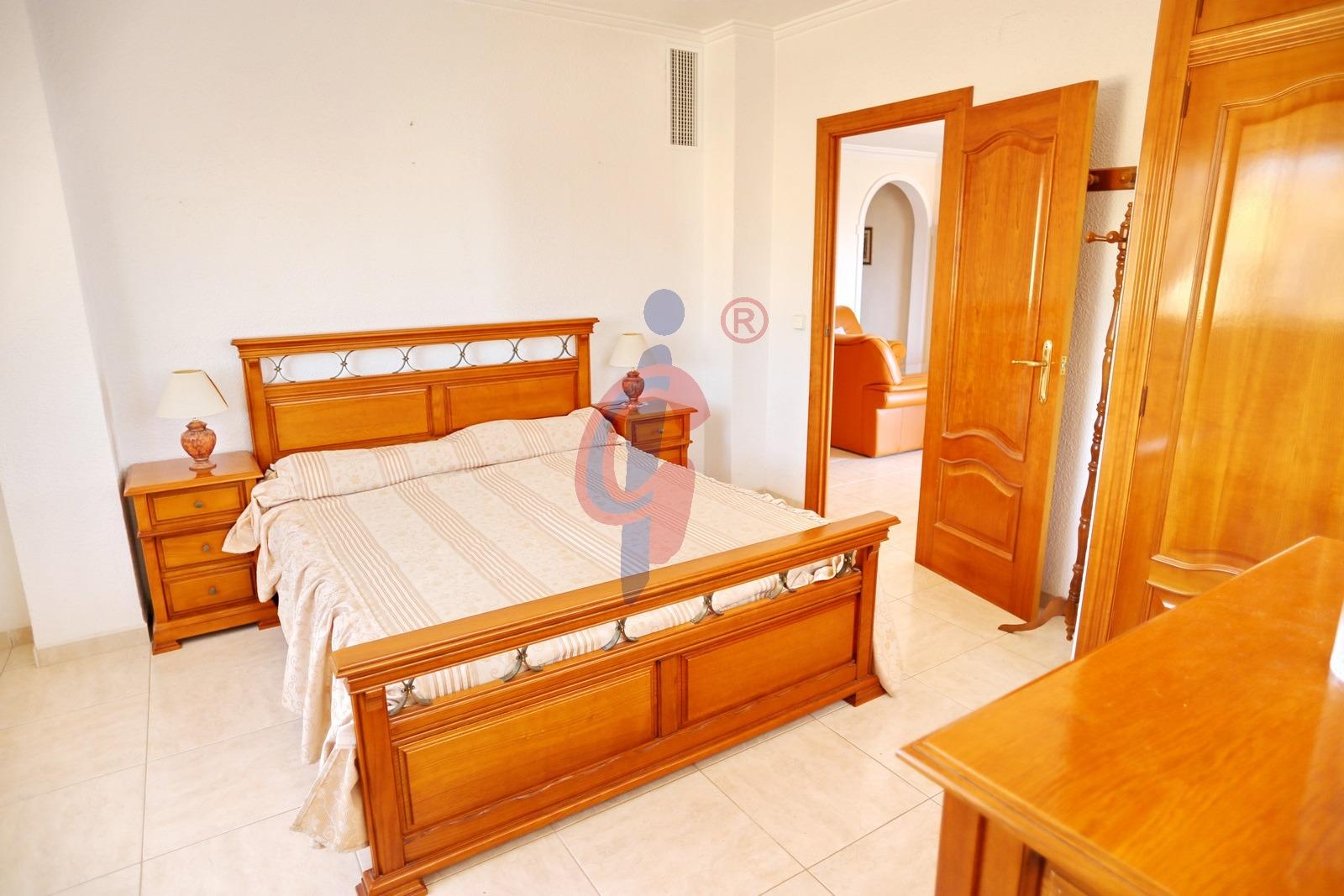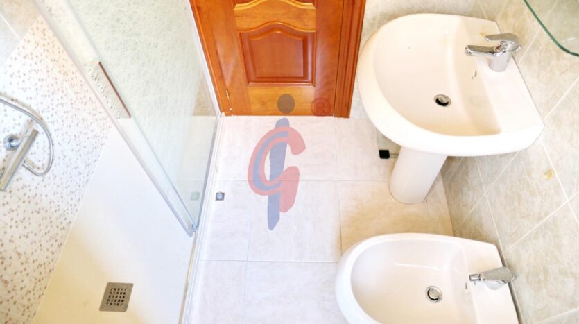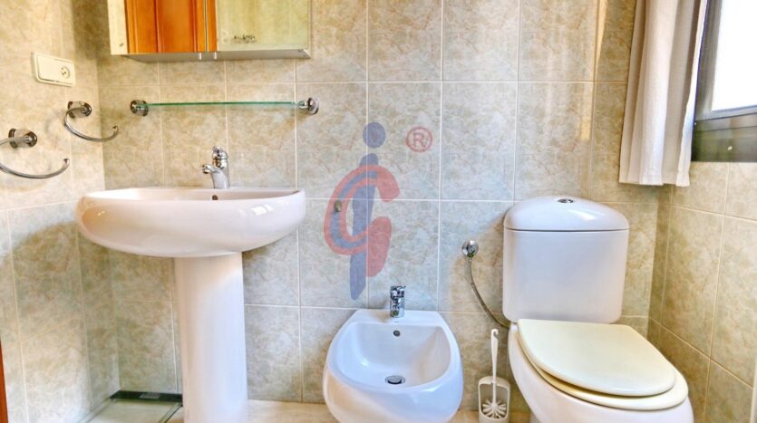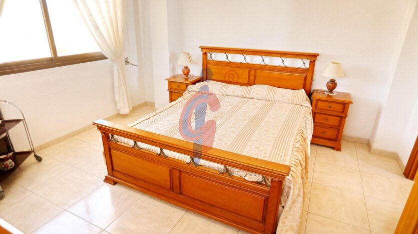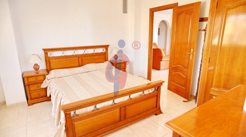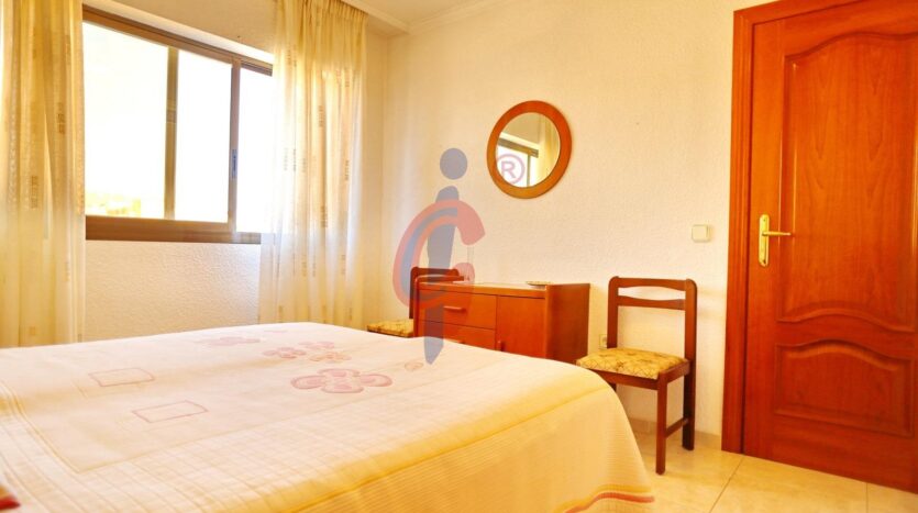 La vivienda cuenta con tres dormitorios con armarios empotrados: uno orientado al sur, con vistas laterales al mar, y los otros dos al oeste. El baño completo dispone de ventana exterior, plato de ducha, lavabo e inodoro.