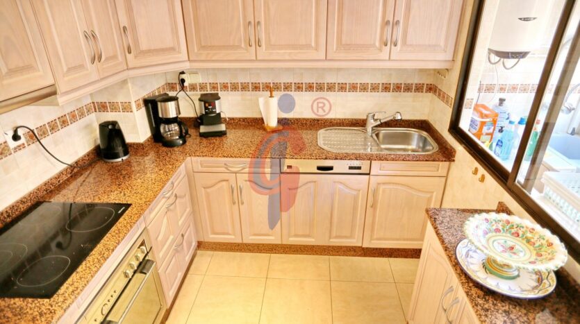 Al ingresar, encontramos a mano derecha una cocina independiente totalmente equipada, con acceso a una galería con lavadero. Continuando por el pasillo, se abre un espacioso salón-comedor, muy luminoso, desde el que se accede a una amplísima terraza orientada al sur, ideal para relajarse o compartir momentos especiales mientras se contempla el mar en todo su esplendor. Las persianas automáticas de la terraza aportan comodidad y funcionalidad.