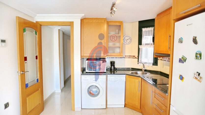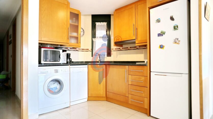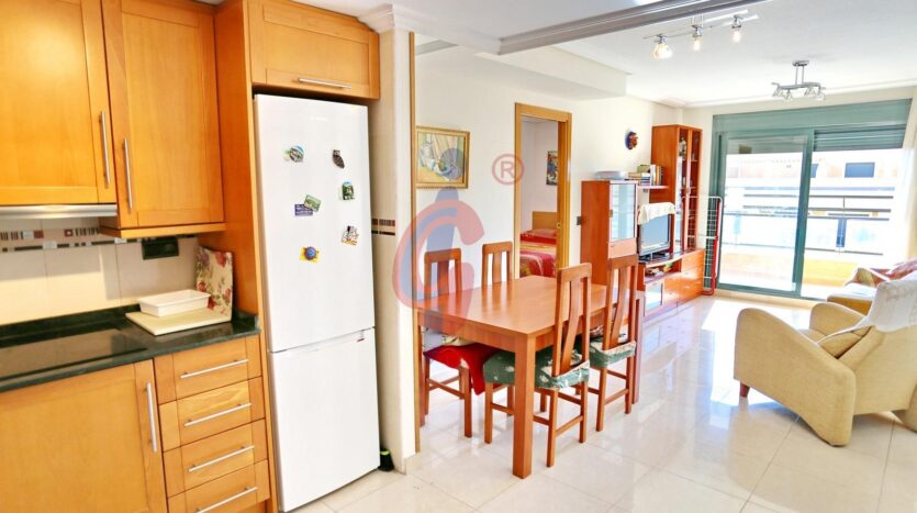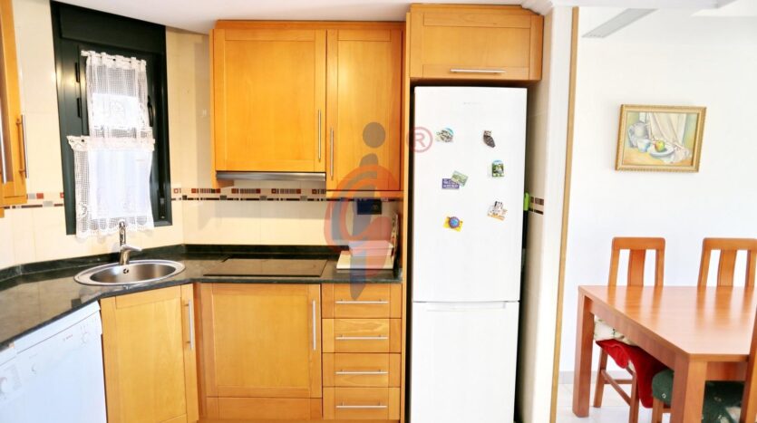 La cocina está completamente integrada con el salón-comedor, formando un espacio abierto, funcional y moderno. Dispone de todos los electrodomésticos necesarios y se conecta con un salón-comedor amplio, con paredes lisas y una excelente entrada de luz natural gracias a su orientación este, perfecta para disfrutar de mañanas soleadas.
