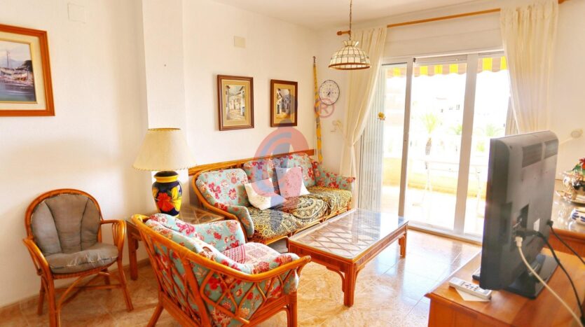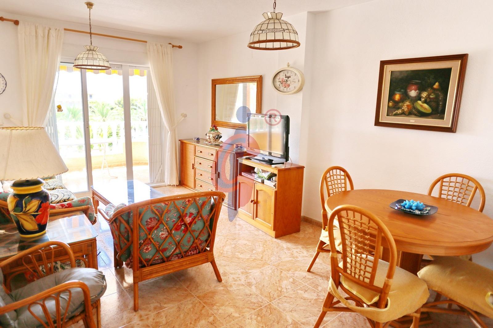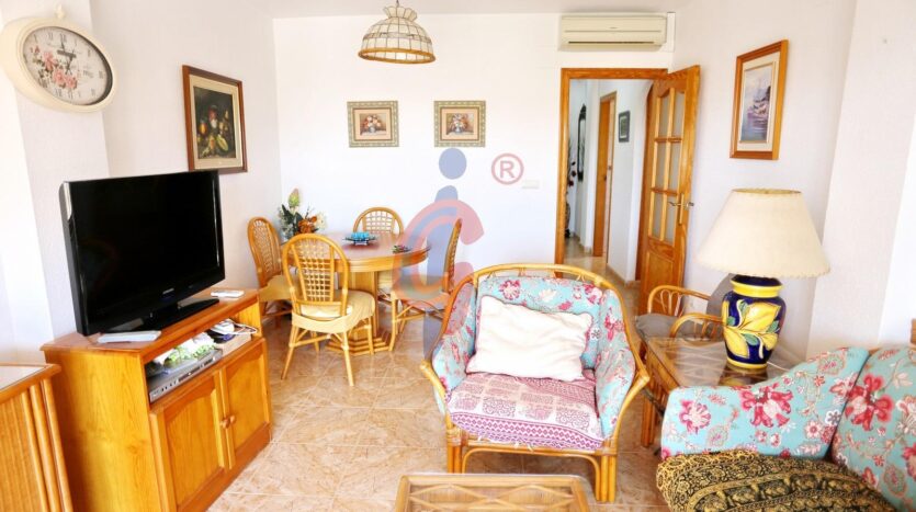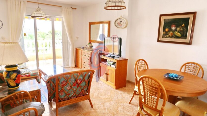 – Salón-comedor amplio, con aire acondicionado y acceso a una terraza con orientación sureste, desde la cual se puede disfrutar de vistas laterales al mar, y vistas despejadas a la urbanización.