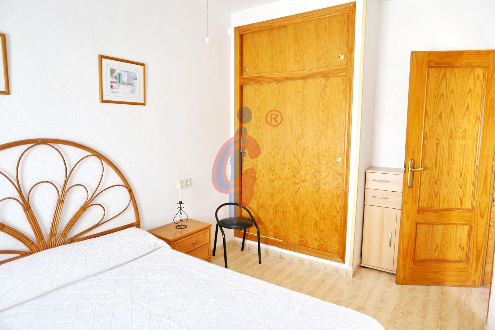 Dormitorio principal: Acogedor y espacioso, con cama de matrimonio, armario empotrado, ventilador de techo y ventana con orientación este.