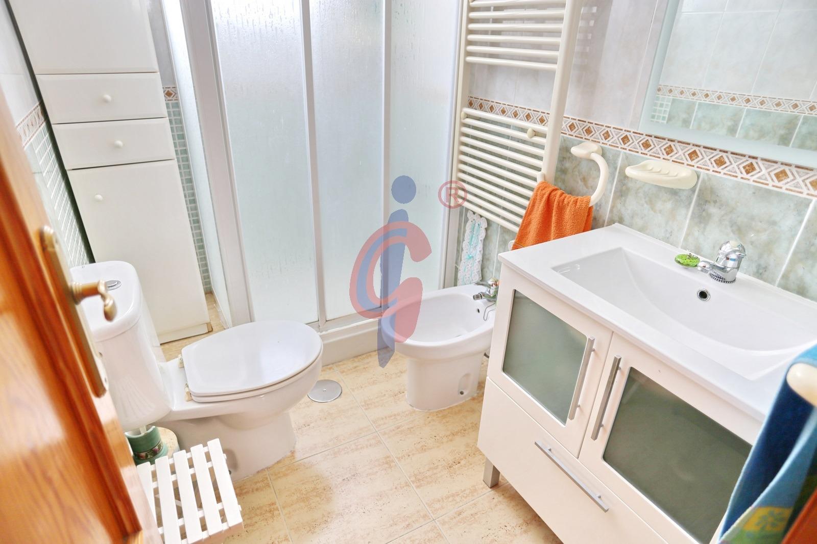 Baño completo: Funcional y cómodo, equipado con plato de ducha, lavabo, inodoro, bidé y mueble auxiliar de almacenamiento.