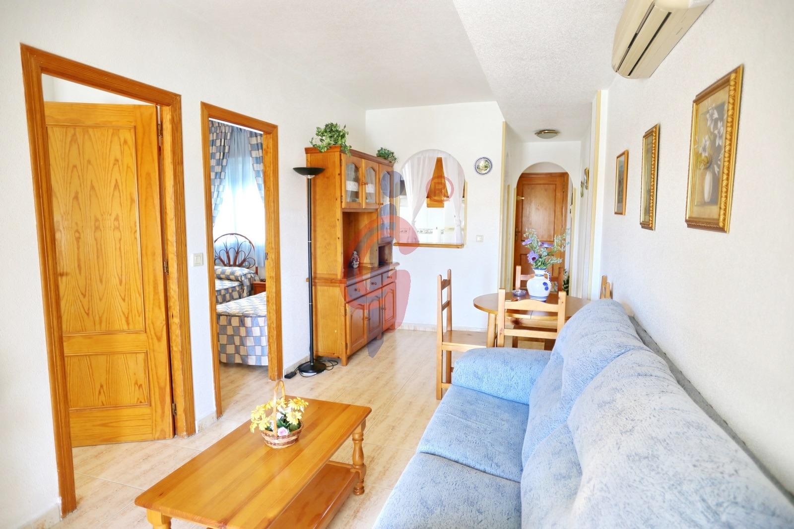 Salón-comedor: Amplio y muy luminoso, totalmente amueblado. Cuenta con aire acondicionado tipo split, ventilador de techo y acceso directo a una terraza privada orientada al este, perfecta para disfrutar del sol de la mañana y de unas vistas despejadas.