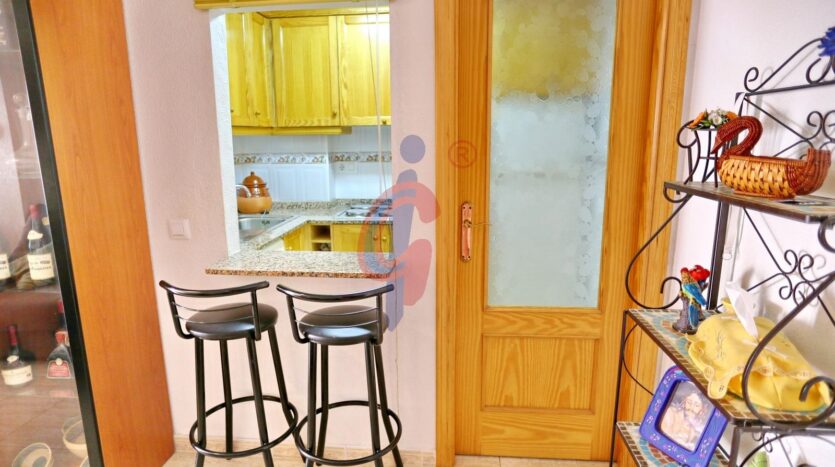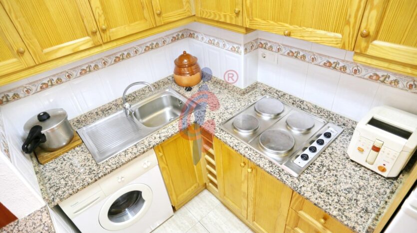 Cocina independiente, funcional y bien distribuida, con ventana hacia el salón que facilita la entrada de luz y ventilación natural.