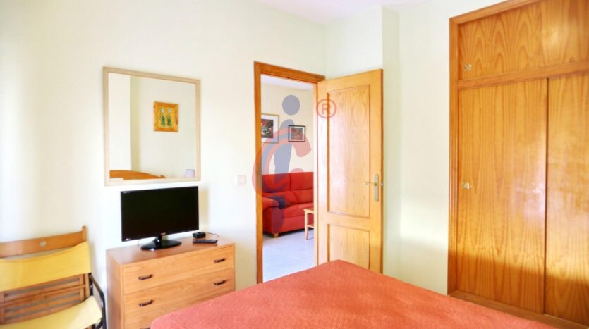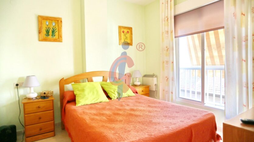 – El dormitorio principal, muy luminoso gracias a su gran ventanal orientado al este, con toldo instalado, dispone de cama de matrimonio y armario empotrado.