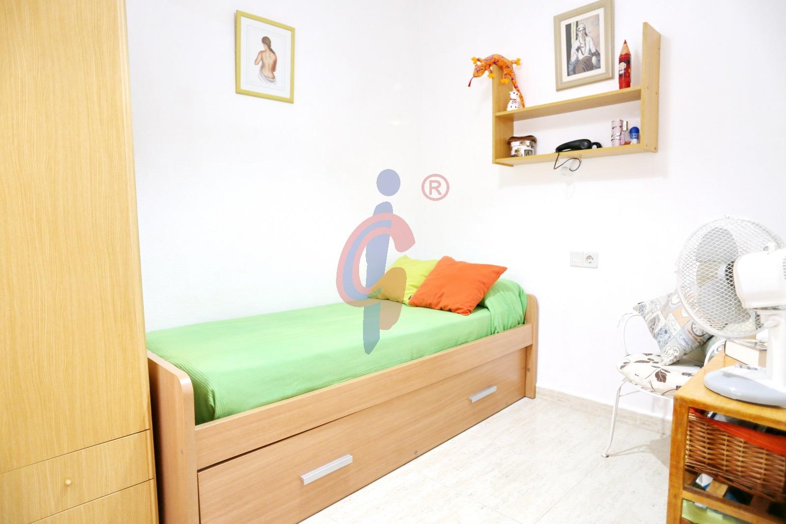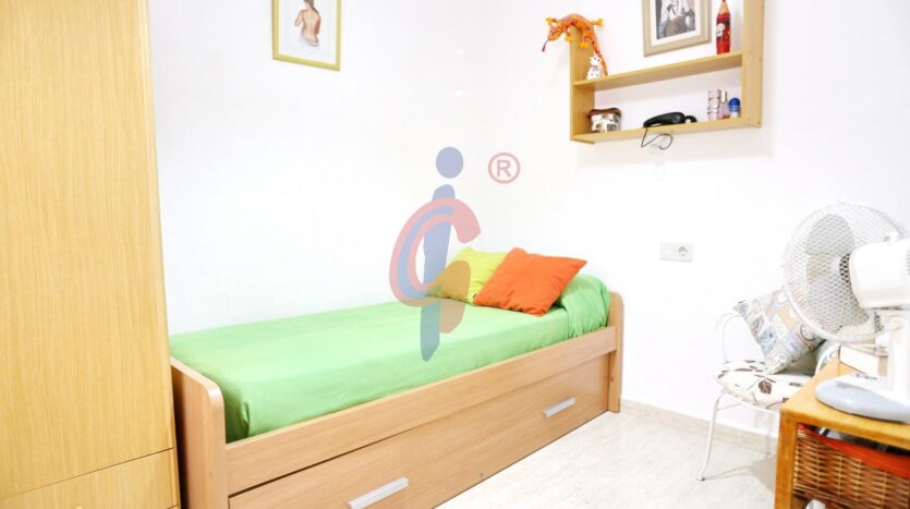 – El segundo dormitorio, con ventana al patio interior, cuenta con una cama individual, ideal como habitación auxiliar o despacho.