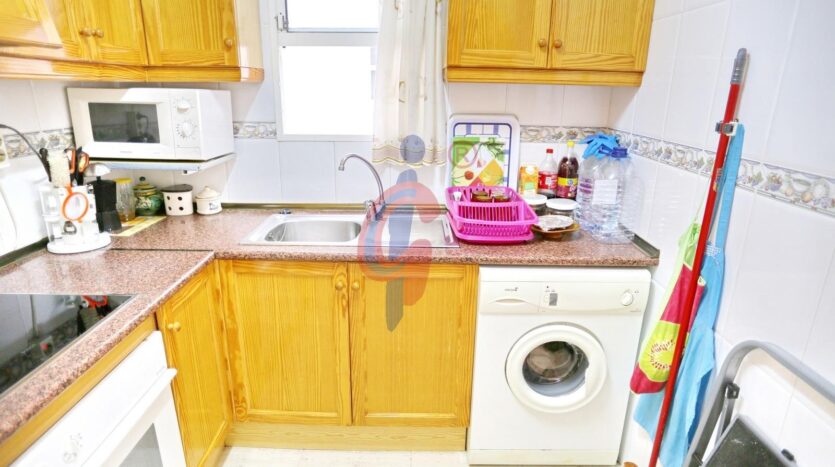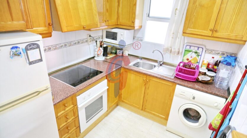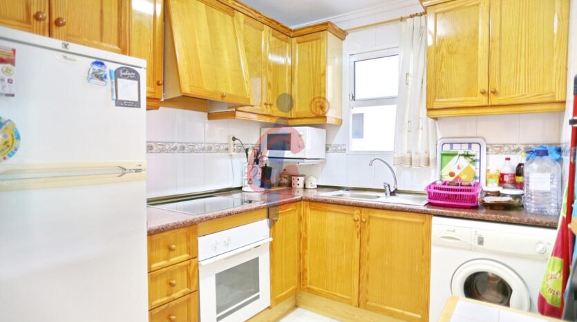 La cocina es independiente y funcional, equipada con todos los electrodomésticos necesarios, ventana al patio de luces y otra al salón, lo que favorece la ventilación cruzada. Además, incluye una práctica mesa plegable para mayor comodidad.