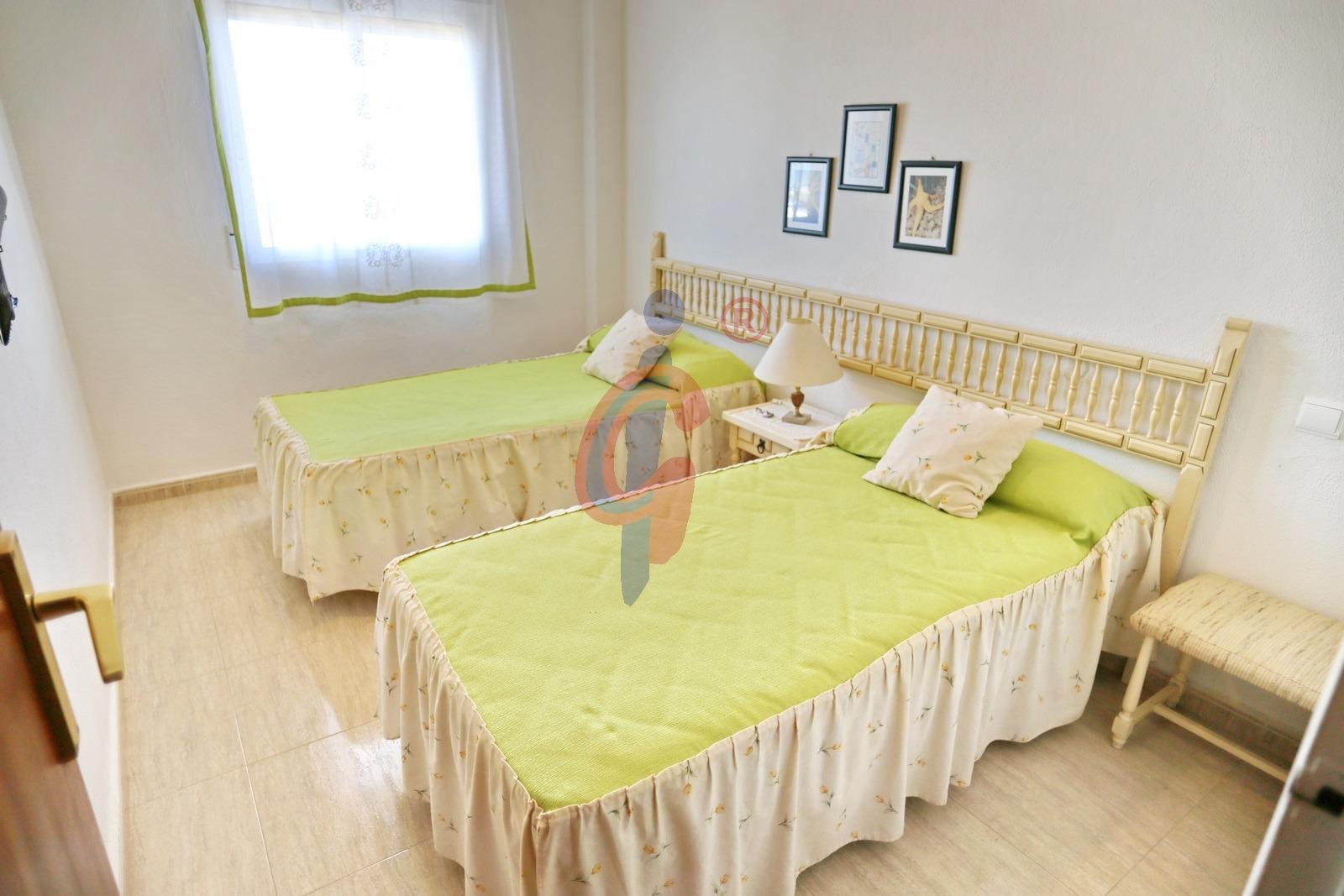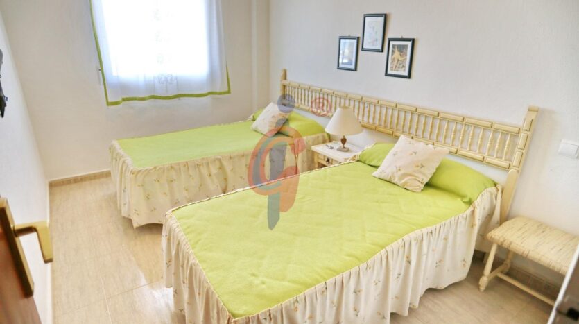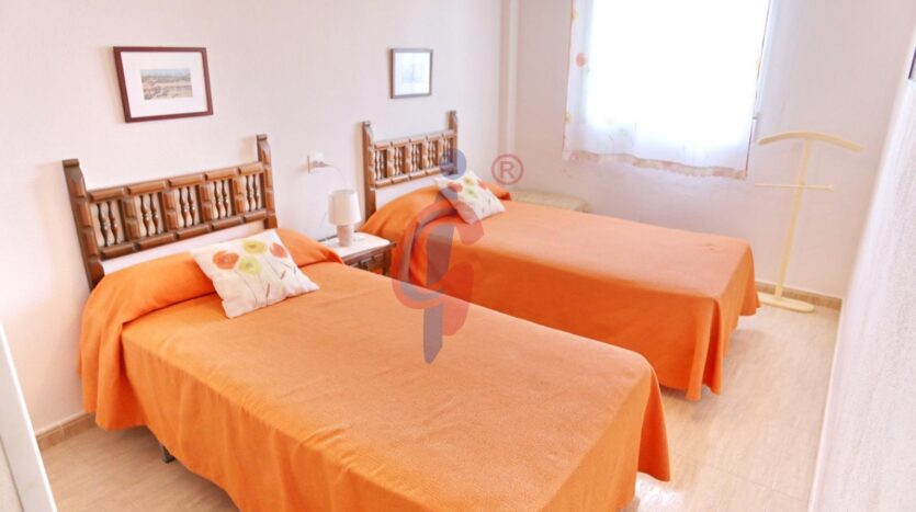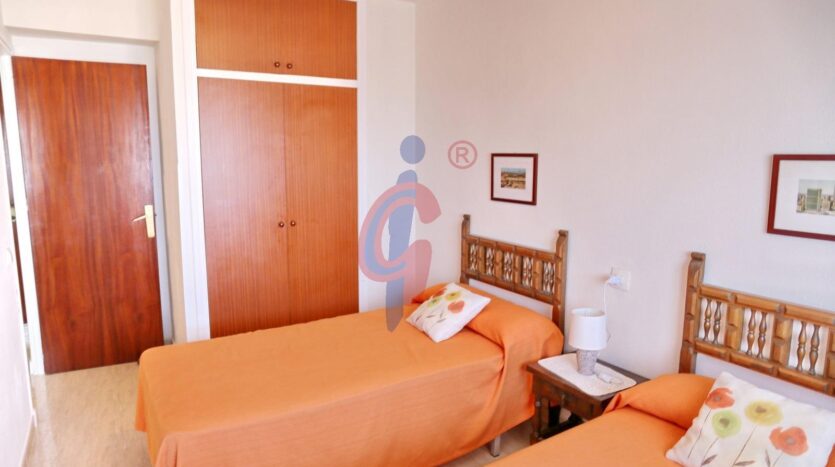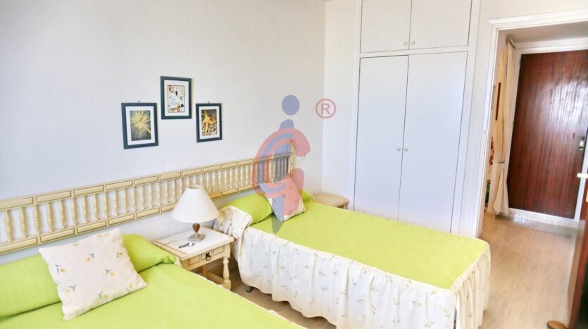 Cuenta con dos dormitorios exteriores, ambos con armarios empotrados y dos camas individuales cada uno, y un baño completo que incluye ducha, lavabo, inodoro y bidé.