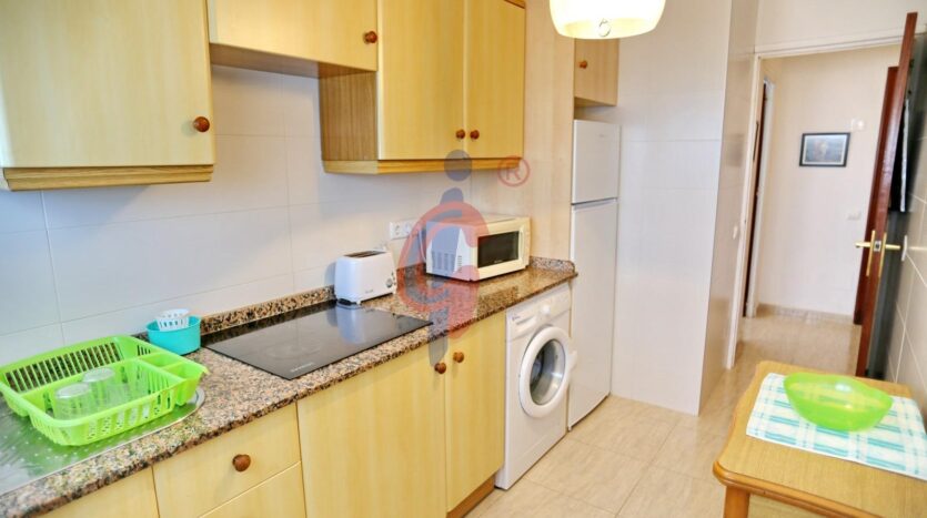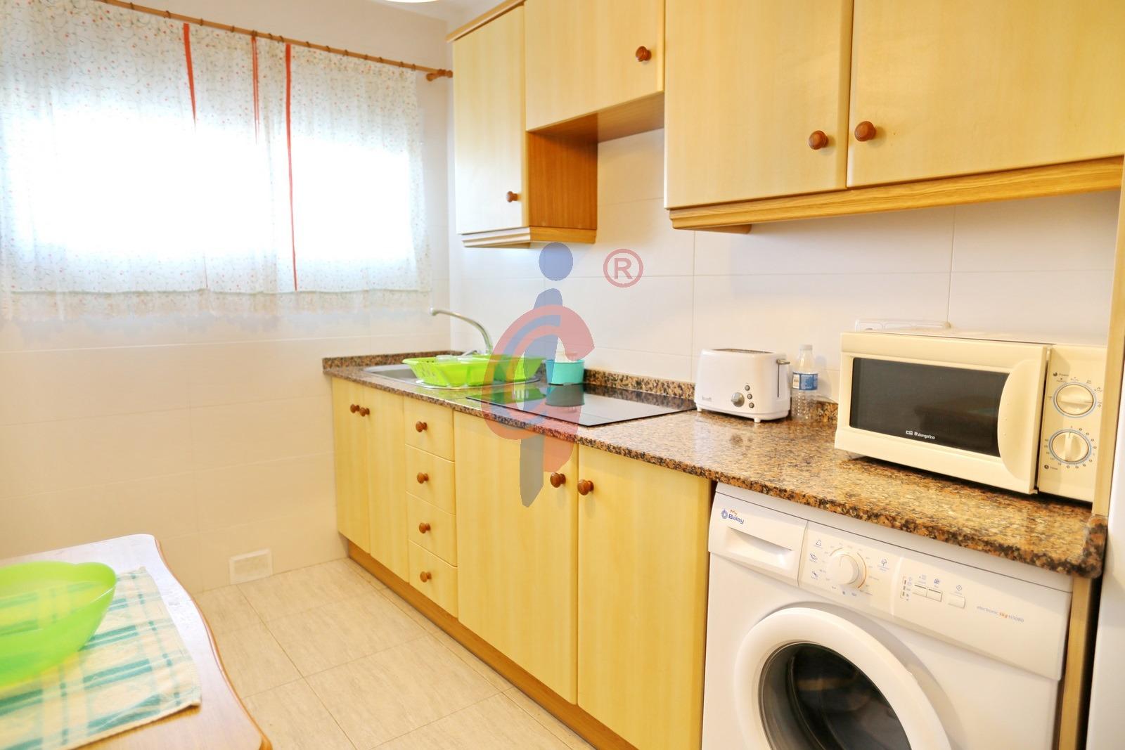 La vivienda dispone de un luminoso y espacioso salón-comedor, completamente amueblado, que se abre a una amplia terraza con vistas panorámicas al mar. La cocina es independiente y está totalmente equipada con electrodomésticos.