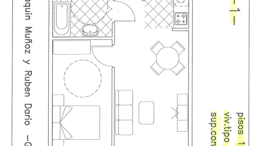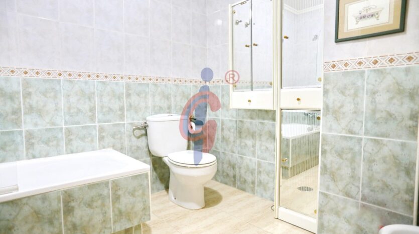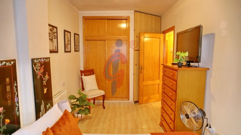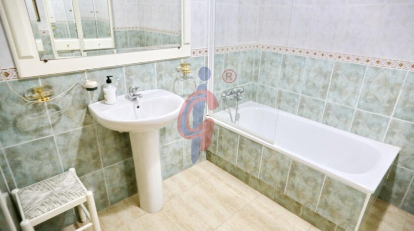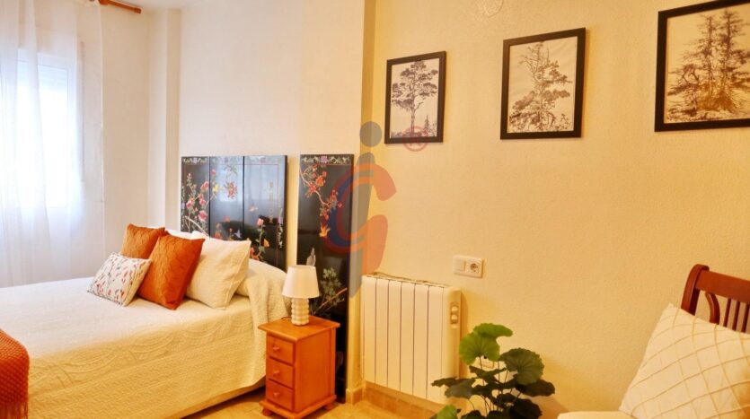 El apartamento dispone de un dormitorio doble con cama de matrimonio y armario empotrado, además de un baño completo con bañera, lavabo, inodoro y bidé.