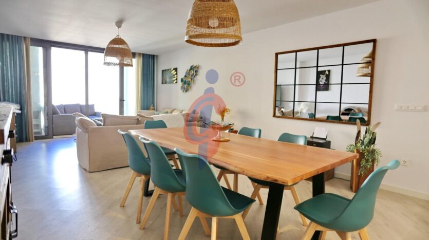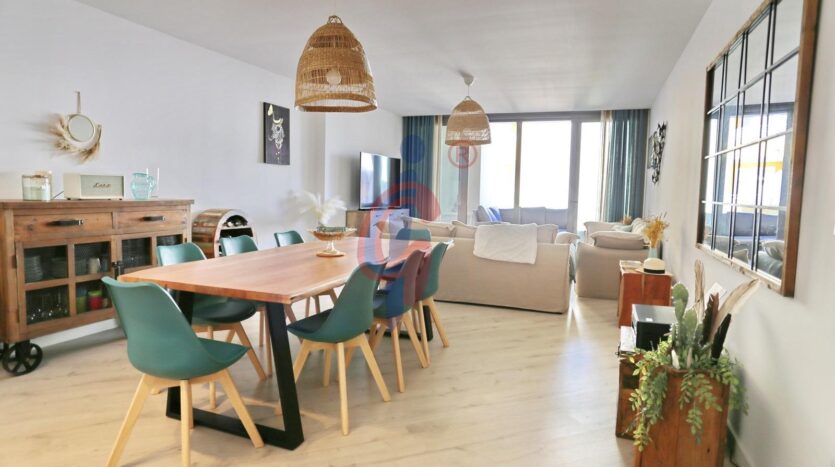 Situada en una segunda planta de un edificio construido en 2020, la vivienda cuenta con 118 metros cuadrados perfectamente distribuidos. Dispone de un amplio salón-comedor con acceso directo a una terraza de 10 metros, ideal para disfrutar del clima templado y de las agradables noches junto al mar. La cocina, moderna y totalmente equipada con electrodomésticos de alta gama, combina funcionalidad y diseño para ofrecer el máximo confort.