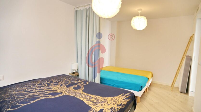 La zona de descanso se compone de dos dormitorios. El principal cuenta con cama doble, armario empotrado y baño en suite, mientras que el segundo dormitorio ofrece un práctico vestidor, armarios empotrados y espacio suficiente para cuatro camas individuales, perfecto para familias o invitados. Además, la vivienda dispone de un segundo baño con plato de ducha y ventilación natural.