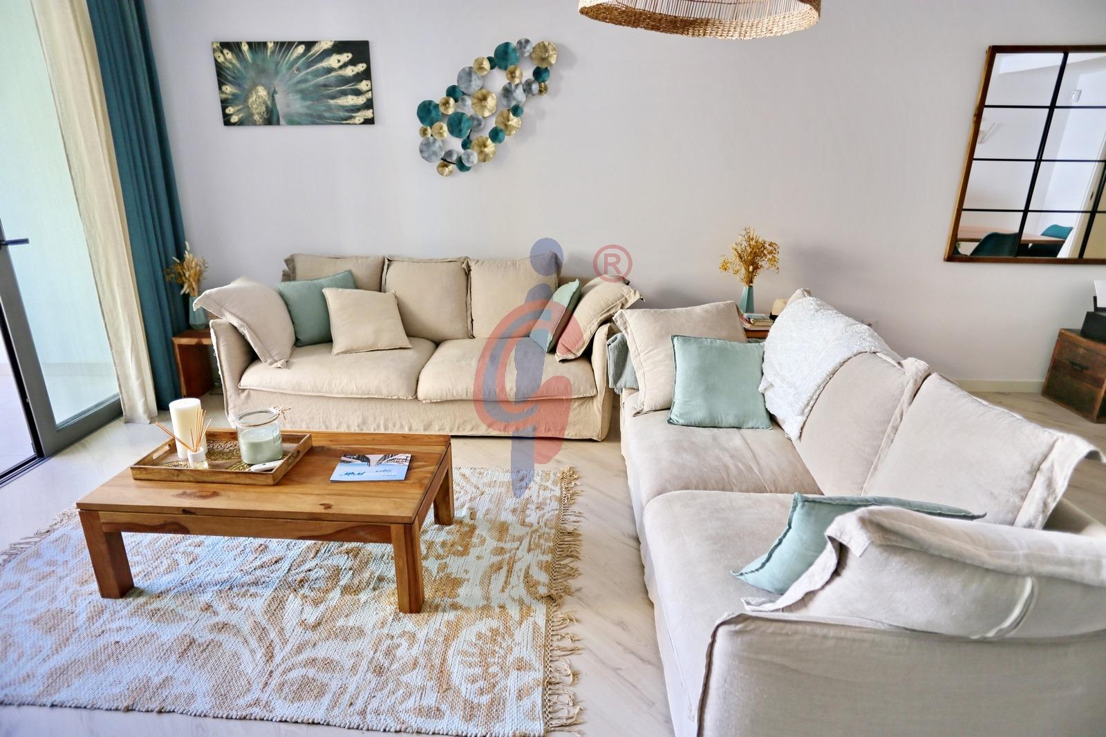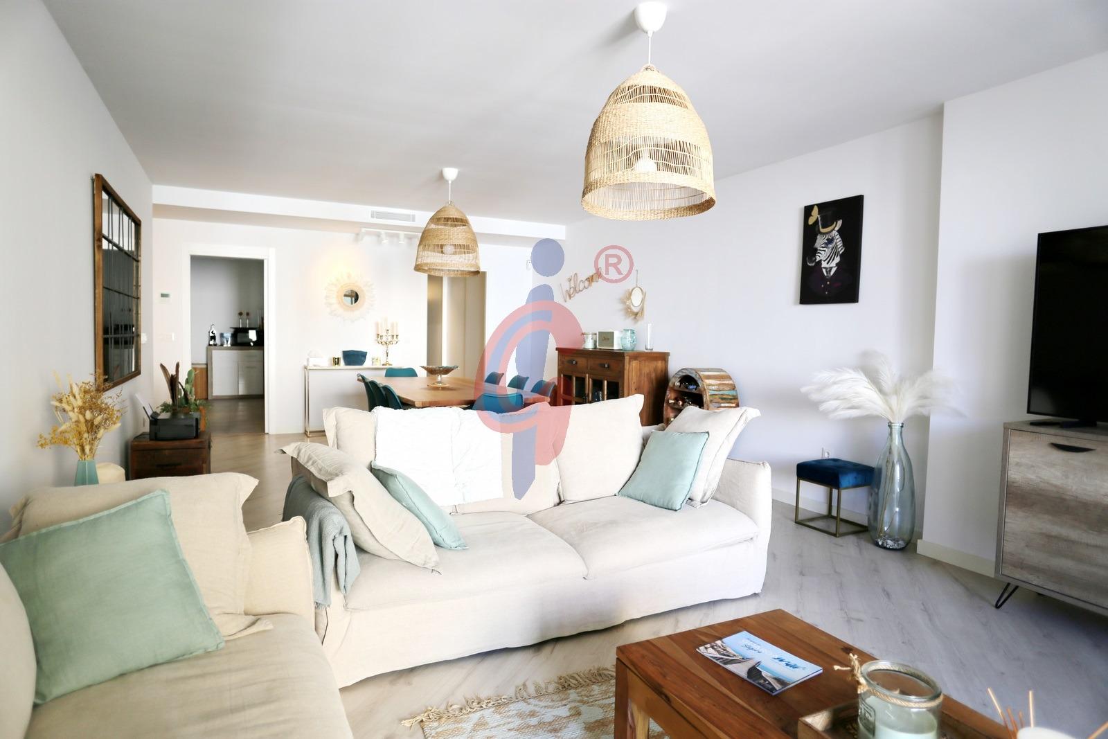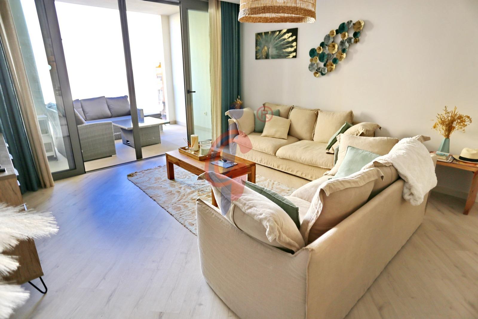 Situada en una segunda planta de un edificio construido en 2020, la vivienda cuenta con 118 metros cuadrados perfectamente distribuidos. Dispone de un amplio salón-comedor con acceso directo a una terraza de 10 metros, ideal para disfrutar del clima templado y de las agradables noches junto al mar. La cocina, moderna y totalmente equipada con electrodomésticos de alta gama, combina funcionalidad y diseño para ofrecer el máximo confort.
