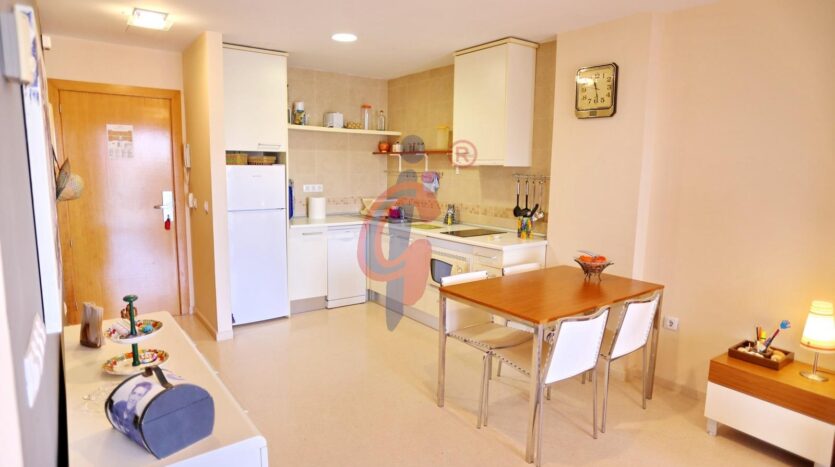 Este apartamento en esquina con orientación oeste y espectaculares vistas, está ubicado en una sexta planta con ascensor de un aparthotel a 2500m de la playa y a unos 250 m del supermercado Masymas, también queda muy cerquita el puerto deportivo de Guardamar.