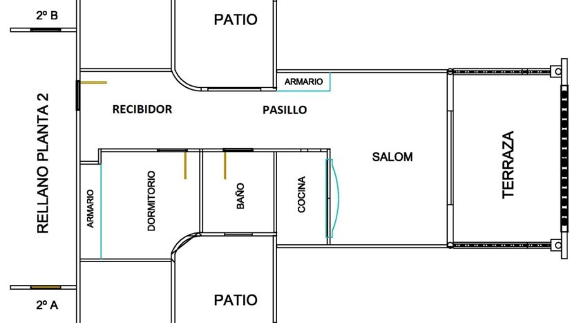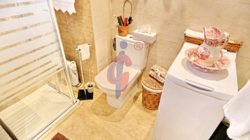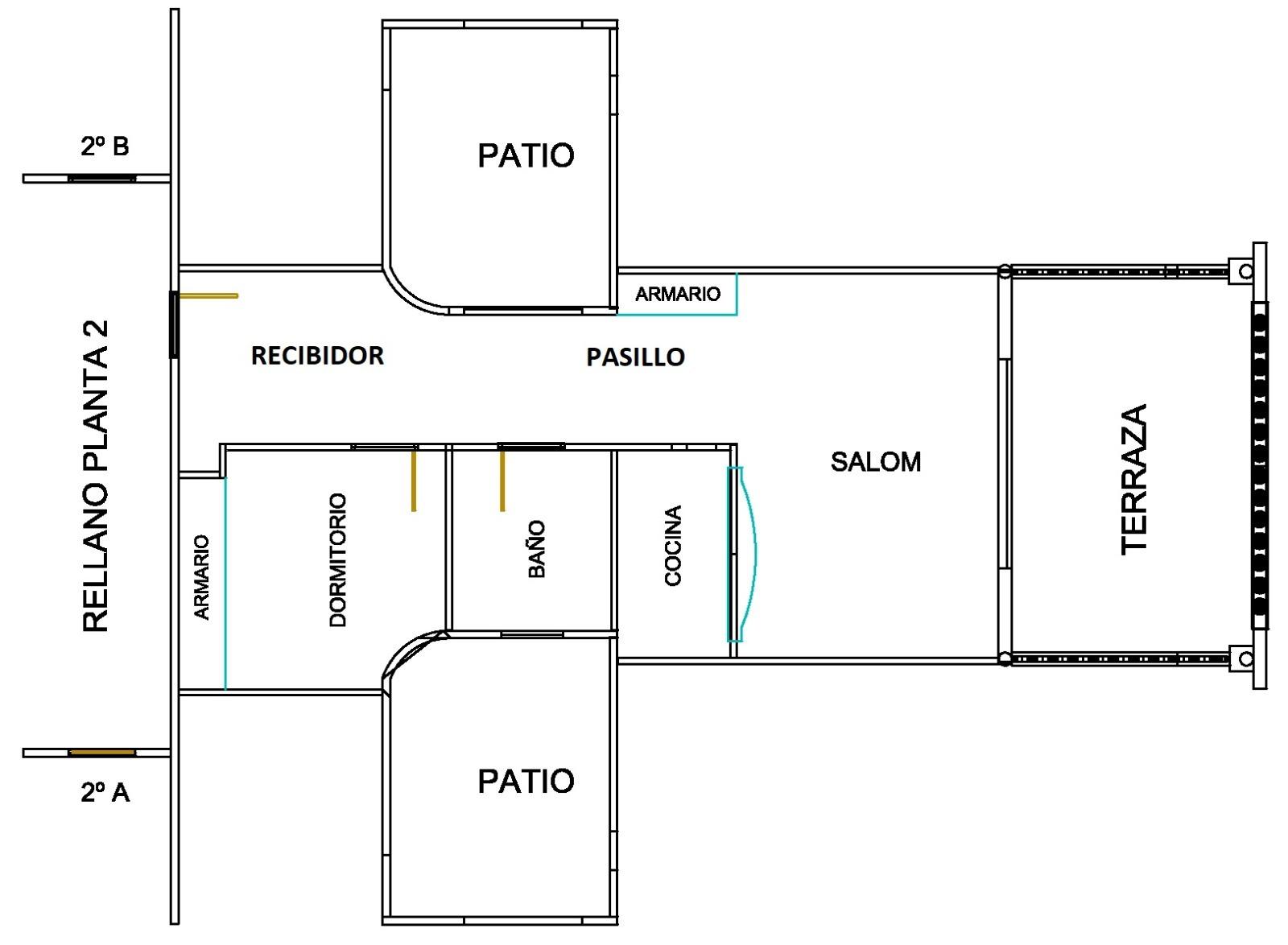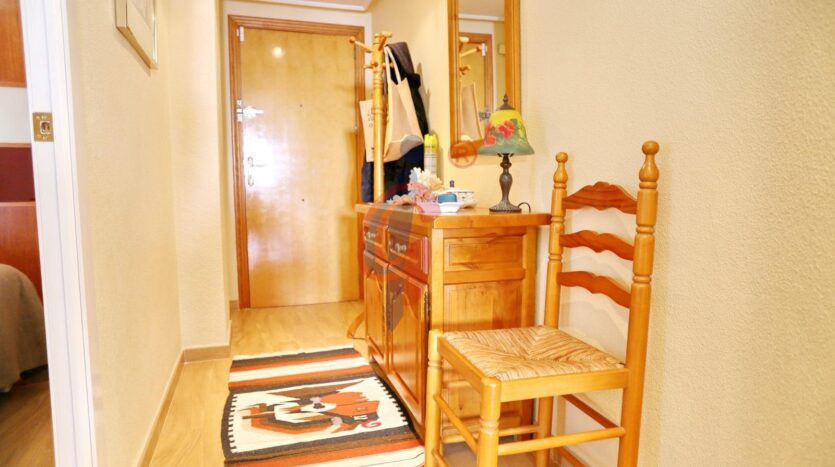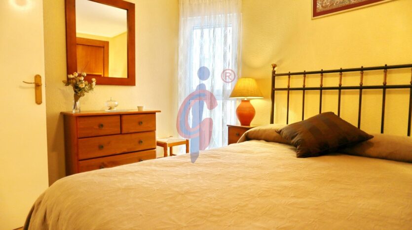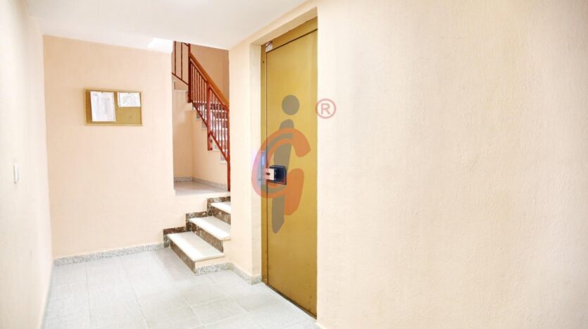 La vivienda, renovada en 2014 y lista para entrar a vivir, ofrece 64,91 m² construidos (47,86 m² útiles) y una distribución cómoda y funcional. Al acceder, un recibidor con ventana aporta luz natural. A la derecha se sitúa el dormitorio, equipado con cama de matrimonio, un amplio armario empotrado y una ventana orientada a un patio interior. El baño, también con ventilación natural, cuenta con plato de ducha de resina con grifería termostática, mampara, mueble con lavabo, espejo y lavadora.