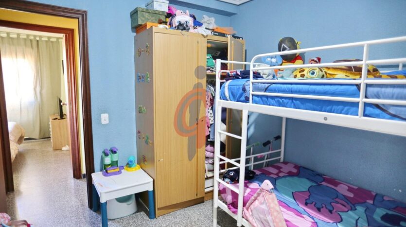 El apartamento está compuesto por tres dormitorios distribuidos de manera funcional. Dos de ellos tienen ventana con vistas a la calle, mientras que el tercero se comunica con la galería, aportando versatilidad y comodidad. El baño es completo y cuenta con bañera.