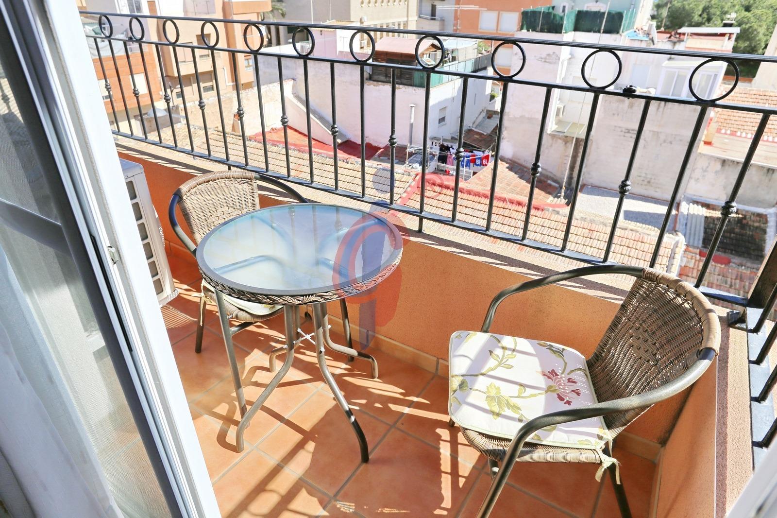 La zona de salón-comedor es amplia y funcional, con espacio suficiente para zona de descanso y comedor. Desde esta estancia se accede directamente a una terraza exterior con espacio para colocar una mesa y dos sillas, ideal para disfrutar del exterior.