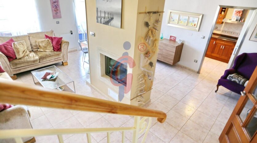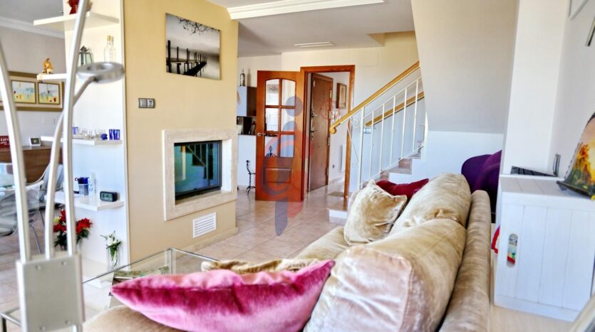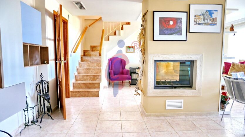 El salón comedor es el corazón de la vivienda, con una chimenea de cristal que crea un ambiente acogedor y elegante, visible desde cualquier punto del salón. En la primera planta, encontrarás dos baños y dos dormitorios, así como el comedor y una cocina con una terraza exterior, perfecta para disfrutar de comidas al aire libre con vistas espectaculares.