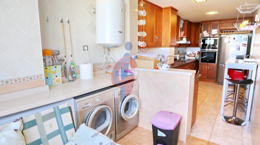 Con una orientación este y oeste, este ático dúplex ofrece ventilación cruzada y prácticamente todas las estancias exteriores, lo que garantiza una luminosidad y frescura inigualables. La amplia cocina cuenta con una zona de lavandería con ventana exterior y vistas al mar, convirtiendo la tarea diaria en un placer.
