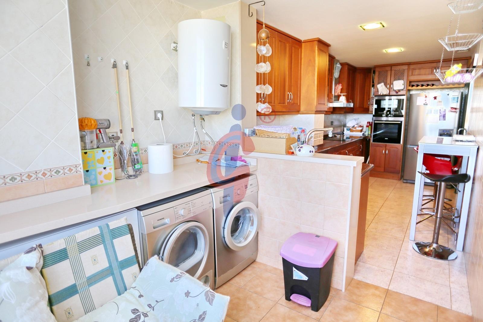 Con una orientación este y oeste, este ático dúplex ofrece ventilación cruzada y prácticamente todas las estancias exteriores, lo que garantiza una luminosidad y frescura inigualables. La amplia cocina cuenta con una zona de lavandería con ventana exterior y vistas al mar, convirtiendo la tarea diaria en un placer.