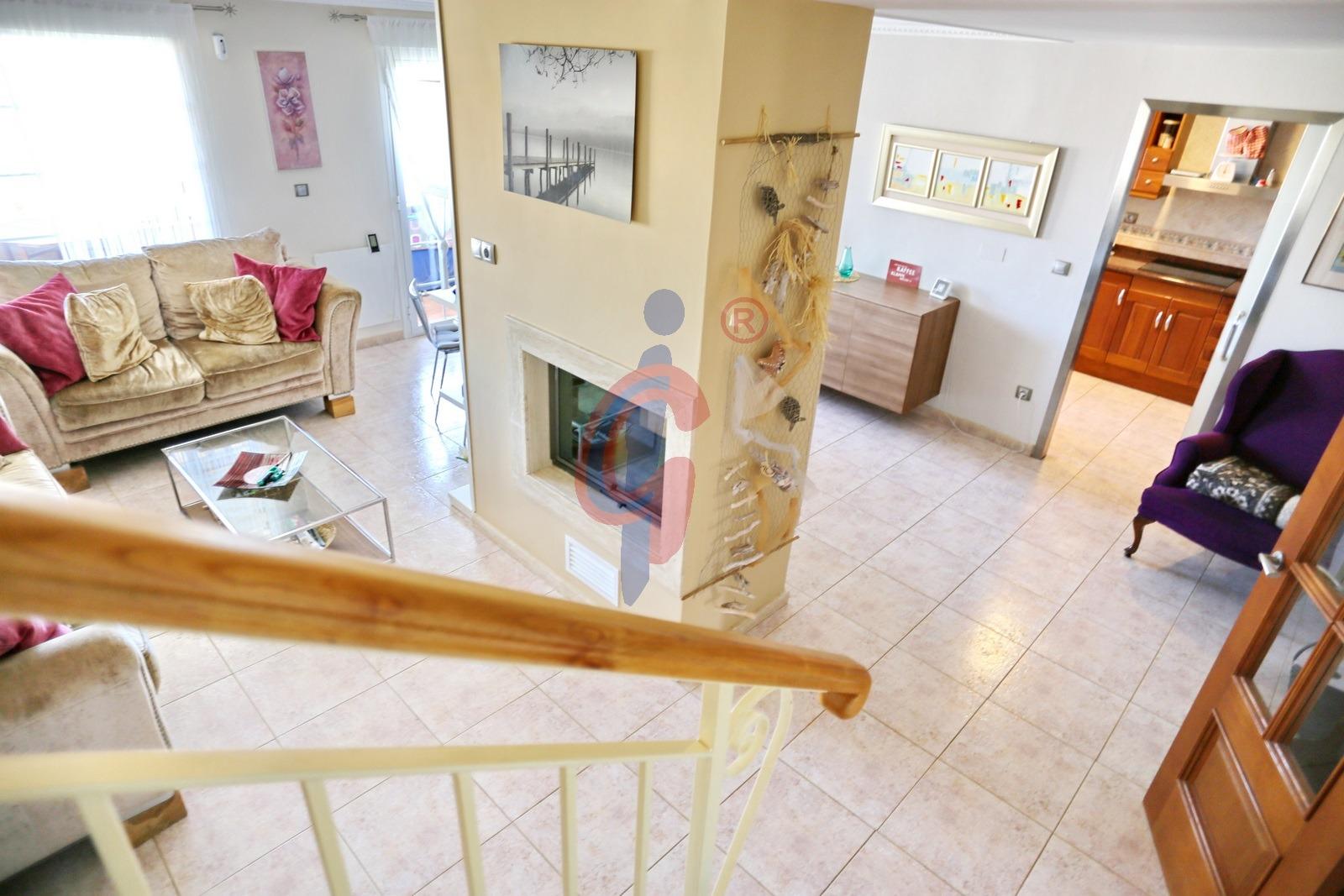 El salón comedor es el corazón de la vivienda, con una chimenea de cristal que crea un ambiente acogedor y elegante, visible desde cualquier punto del salón. En la primera planta, encontrarás dos baños y dos dormitorios, así como el comedor y una cocina con una terraza exterior, perfecta para disfrutar de comidas al aire libre con vistas espectaculares.
