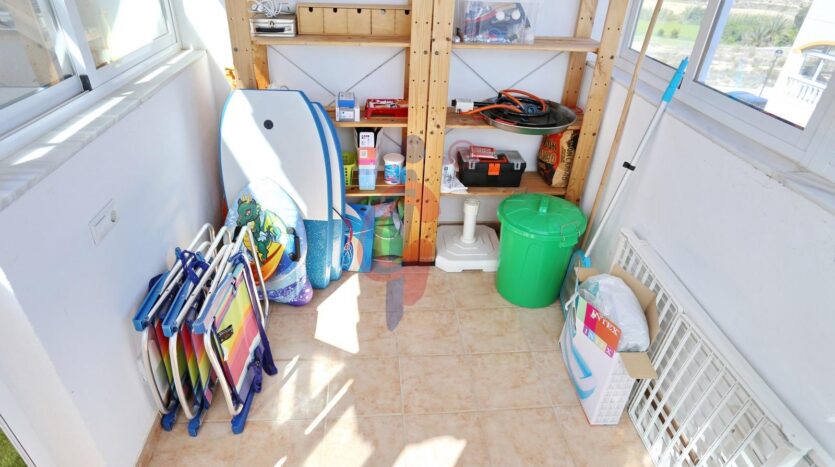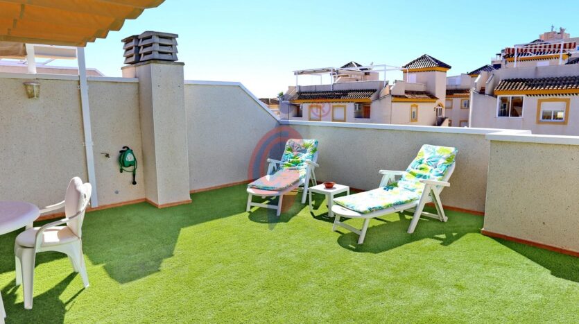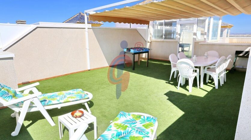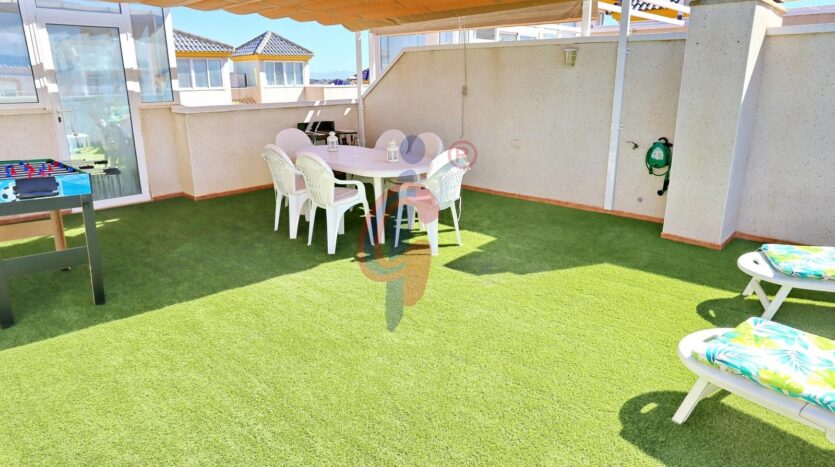 – En la planta superior tiene una terraza solárium adicional de 30 m2 con césped artificial y un trastero acristalado.