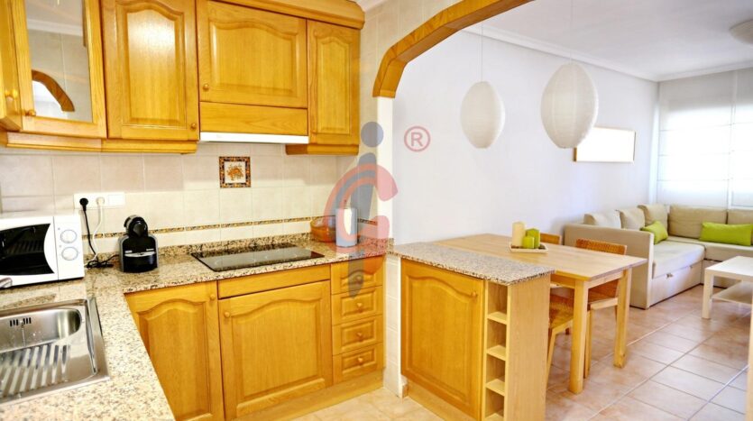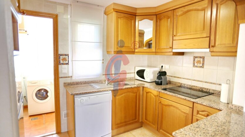 – Cocina con mucho espacio en armarios y barra americana al salón comedor, encimera de granito, incluye todos los electrodomésticos necesarios y tiene salida a una galería o lavadero exterior y acceso por escalera a la planta superior.