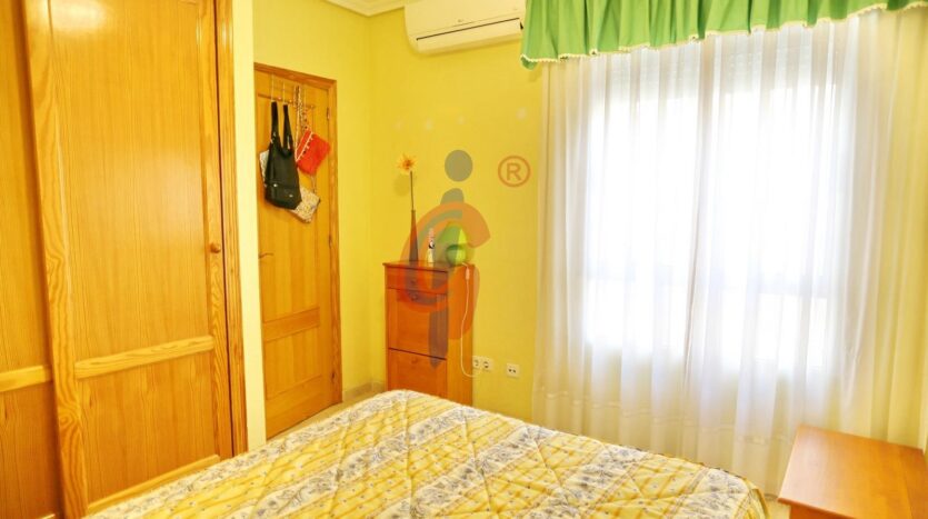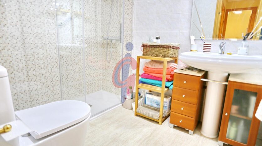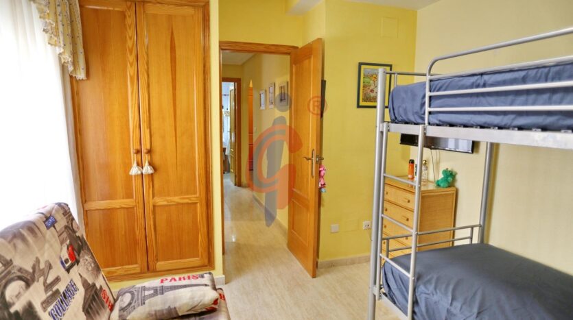 La zona de descanso cuenta con dos dormitorios de buen tamaño, ambos con armarios empotrados y aire acondicionado, ofreciendo confort y espacio de almacenamiento. El baño ha sido reformado recientemente y dispone de ducha con mampara, con un diseño moderno y práctico.