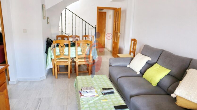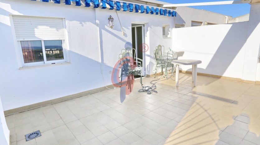 La vivienda se distribuye en dos plantas. En la primera planta encontramos una cocina independiente totalmente equipada, con ventana a patio interior; un salón-comedor amplio y muy luminoso, con aire acondicionado, amueblado y con salida directa a una acogedora terraza orientada al sur; además de un cuarto de baño completo con bañera y dos dormitorios con armarios empotrados. En la segunda planta se ubica un tercer dormitorio también con armario empotrado, un baño con ducha y un espectacular solárium privado, amplio y soleado, con unas vistas despejadas al mar que invitan a relajarse y disfrutar del clima mediterráneo durante todo el año.